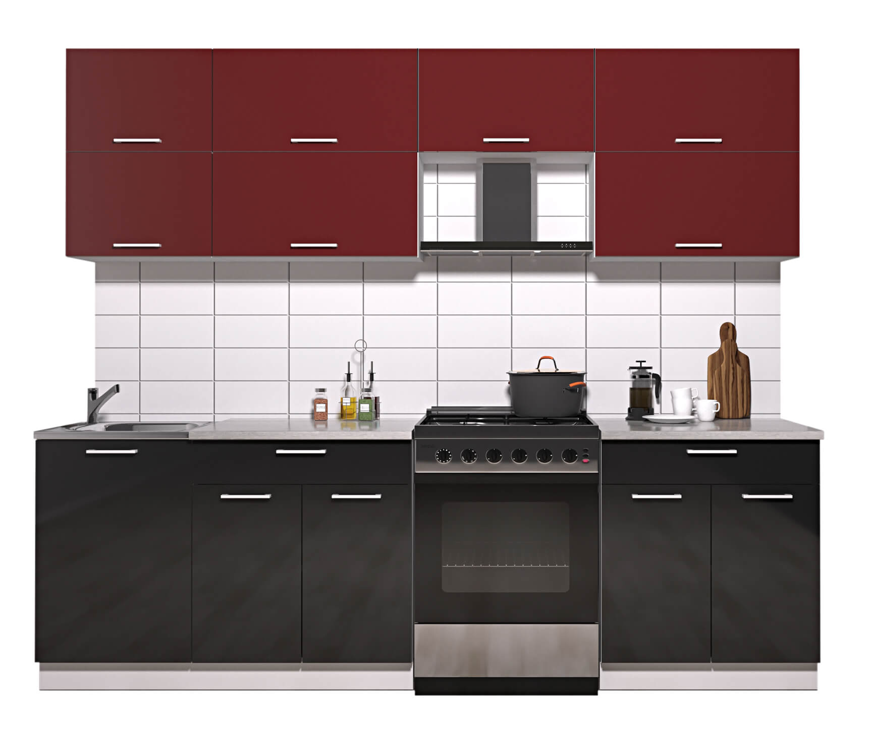 ГОТОВАЯ КУХНЯ ГЛОСС 60-25 (БОРДОВЫЙ/ ЧЕРНЫЙ) - Yuta.by