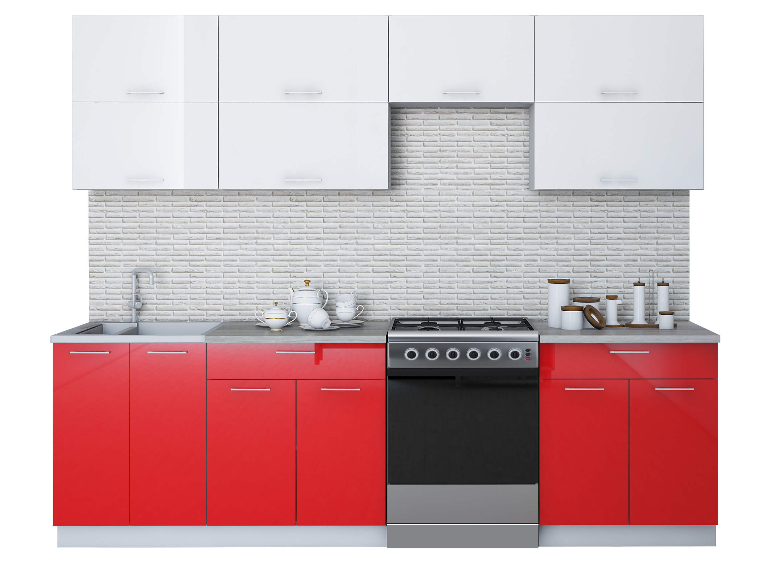 ГОТОВАЯ КУХНЯ ГЛОСС 60-26 (БЕЛЫЙ/ КРАСНЫЙ) - Yuta.by