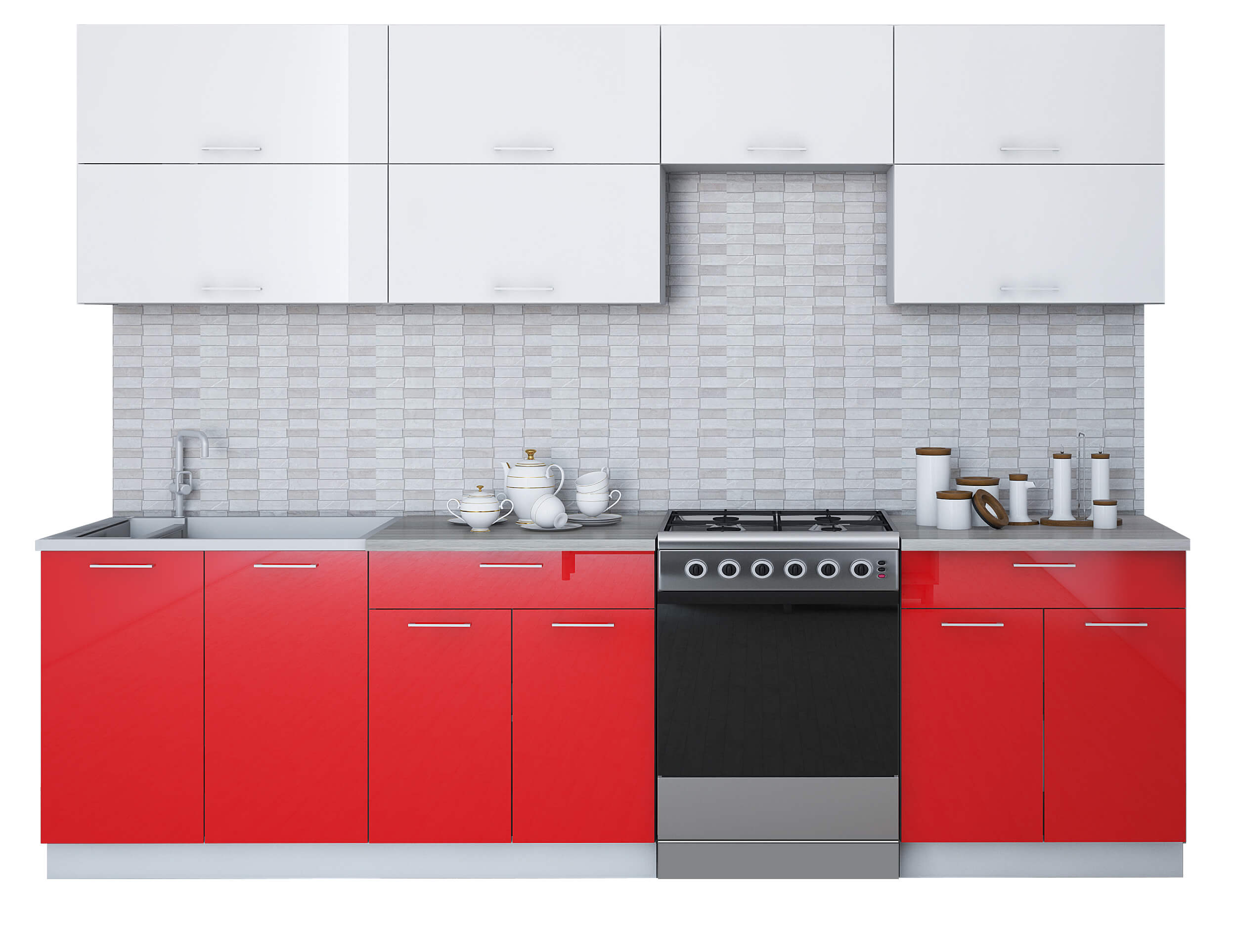 ГОТОВАЯ КУХНЯ ГЛОСС 60-28 (БЕЛЫЙ/ КРАСНЫЙ) - Yuta.by