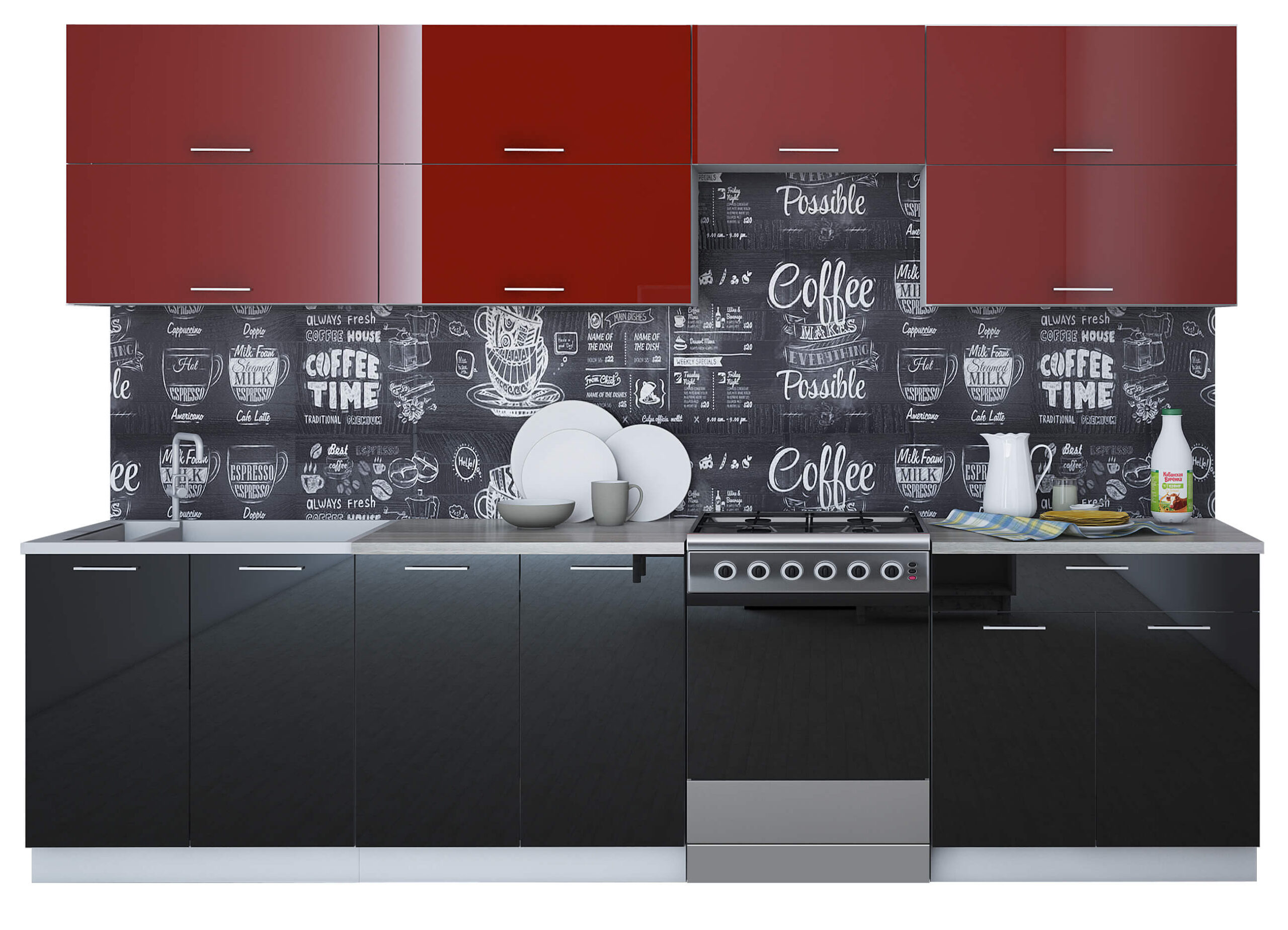 ГОТОВАЯ КУХНЯ ГЛОСС 60-30 (БОРДОВЫЙ/ ЧЕРНЫЙ) - Yuta.by