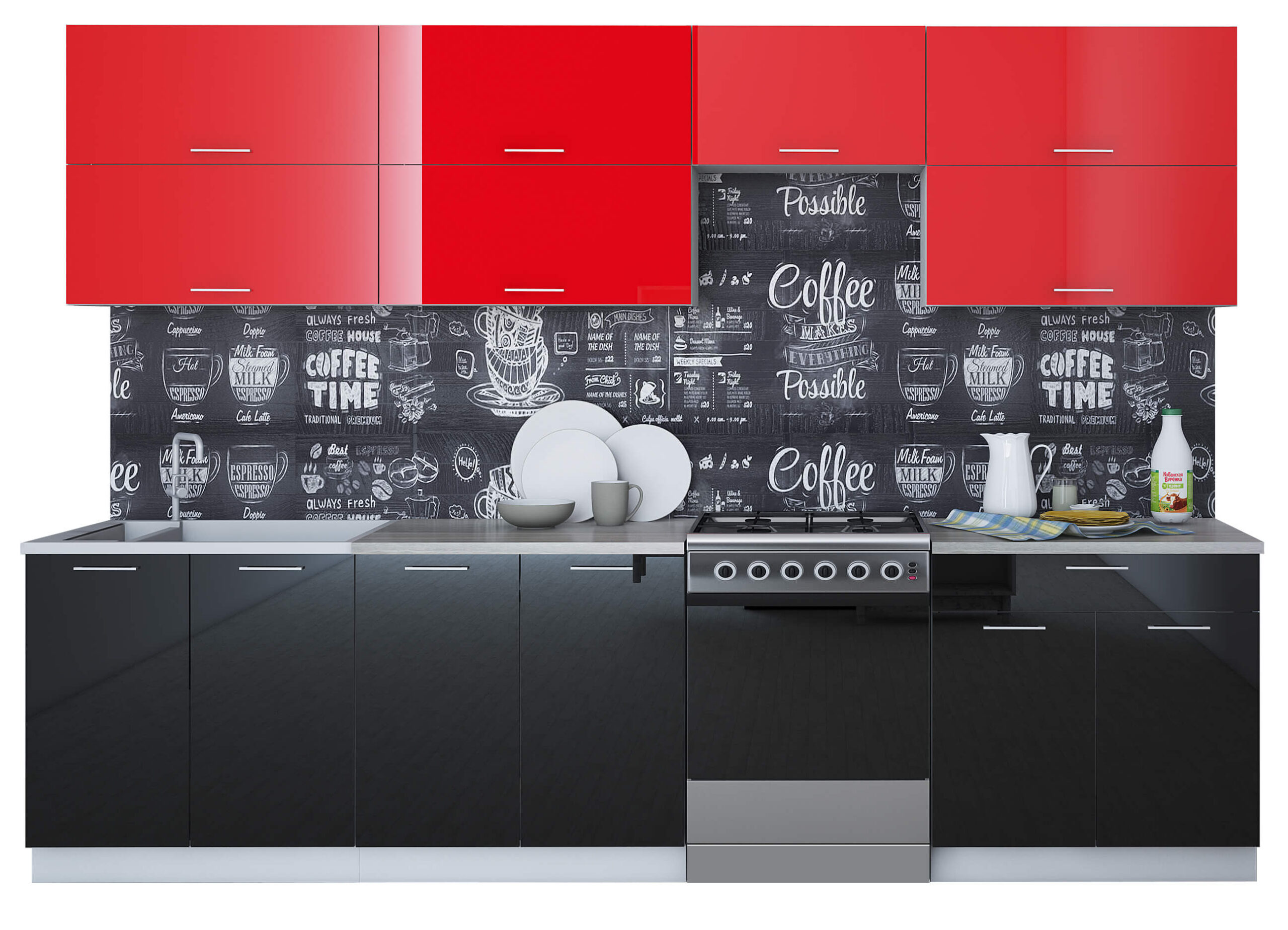 ГОТОВАЯ КУХНЯ ГЛОСС 60-30 (КРАСНЫЙ/ ЧЕРНЫЙ) - Yuta.by