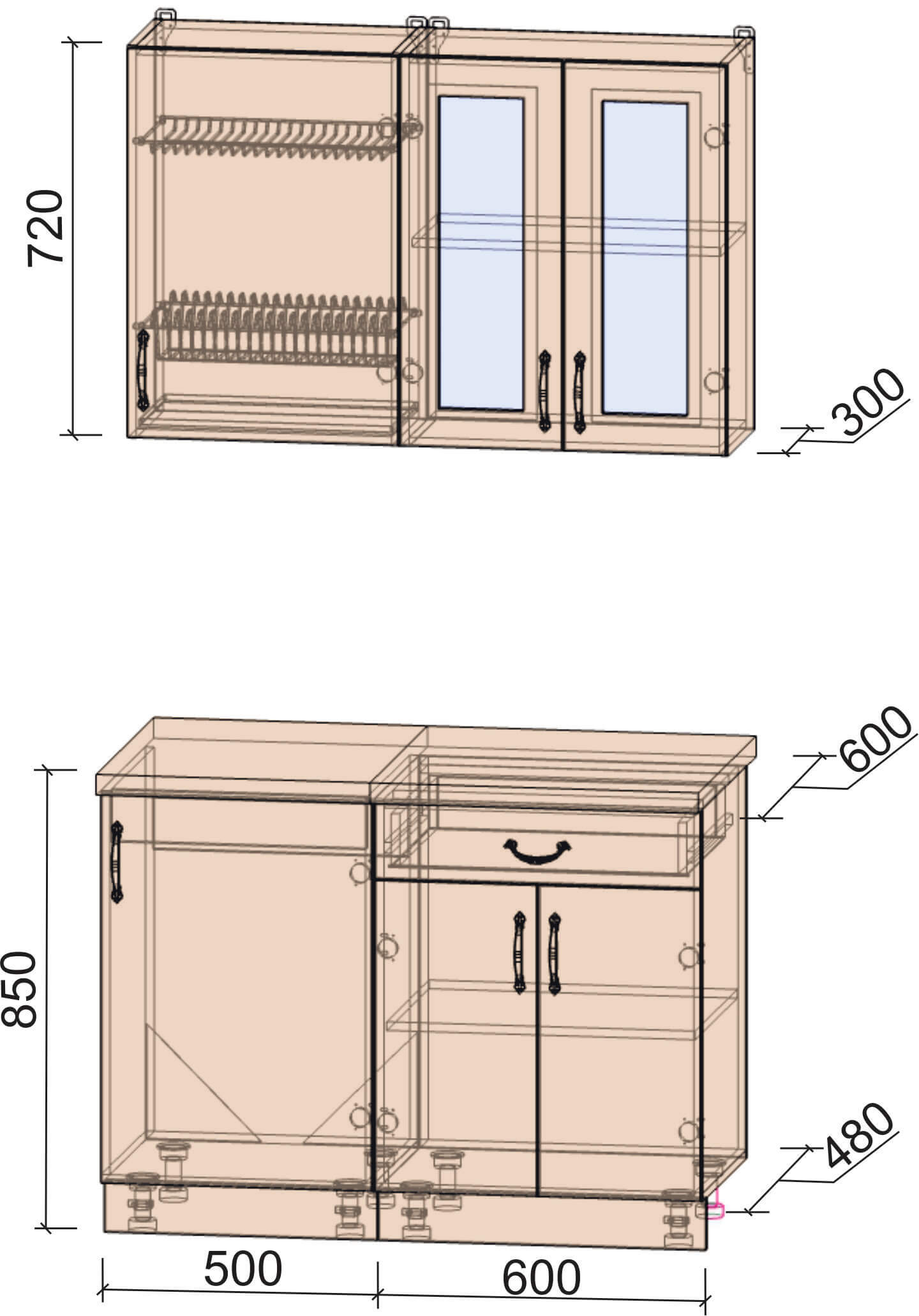 ГОТОВАЯ КУХНЯ КРАФТ 1,1 (ДУБ ПОЛЯРНЫЙ/ ДУБ АНГЛИЙСКИЙ)