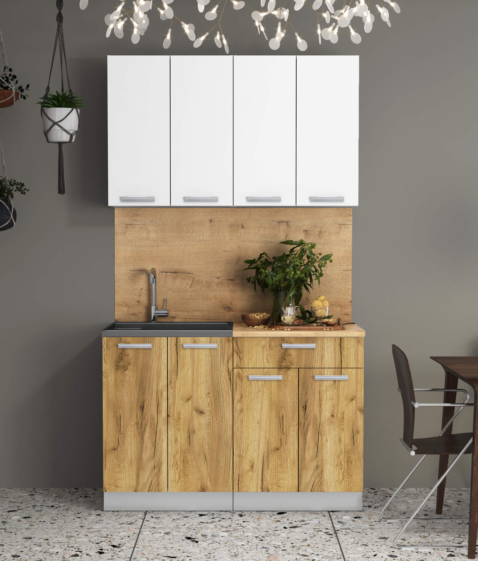 ГОТОВАЯ КУХНЯ ЛАЙТ 1,2 (БЕЛЫЙ/ ДУБ ЗОЛОТОЙ) - Yuta.by