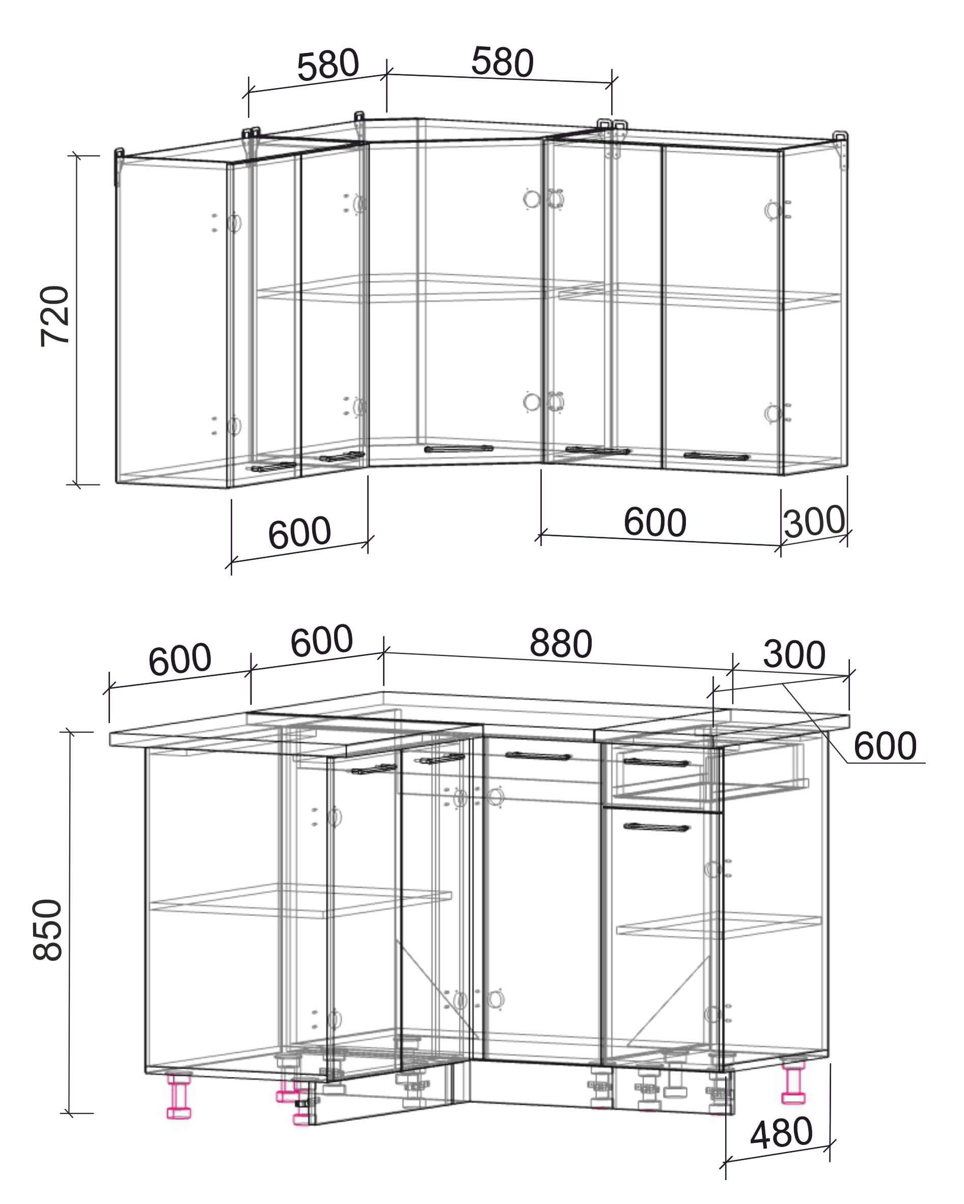 шкаф нижний для посудомоечной машины шириной 450 мм и 600 мм;
