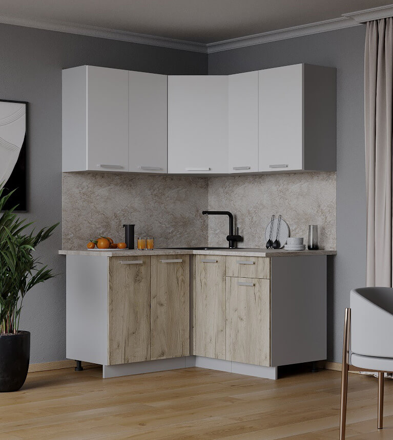 ГОТОВАЯ КУХНЯ ЛАЙТ 1,2X1,3 (БЕЛЫЙ/ ДУБ СЕРЫЙ) - Yuta.by