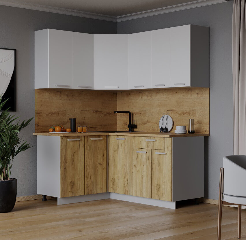 ГОТОВАЯ КУХНЯ ЛАЙТ 1,2X1,6 (БЕЛЫЙ/ ДУБ ЗОЛОТОЙ) - Yuta.by