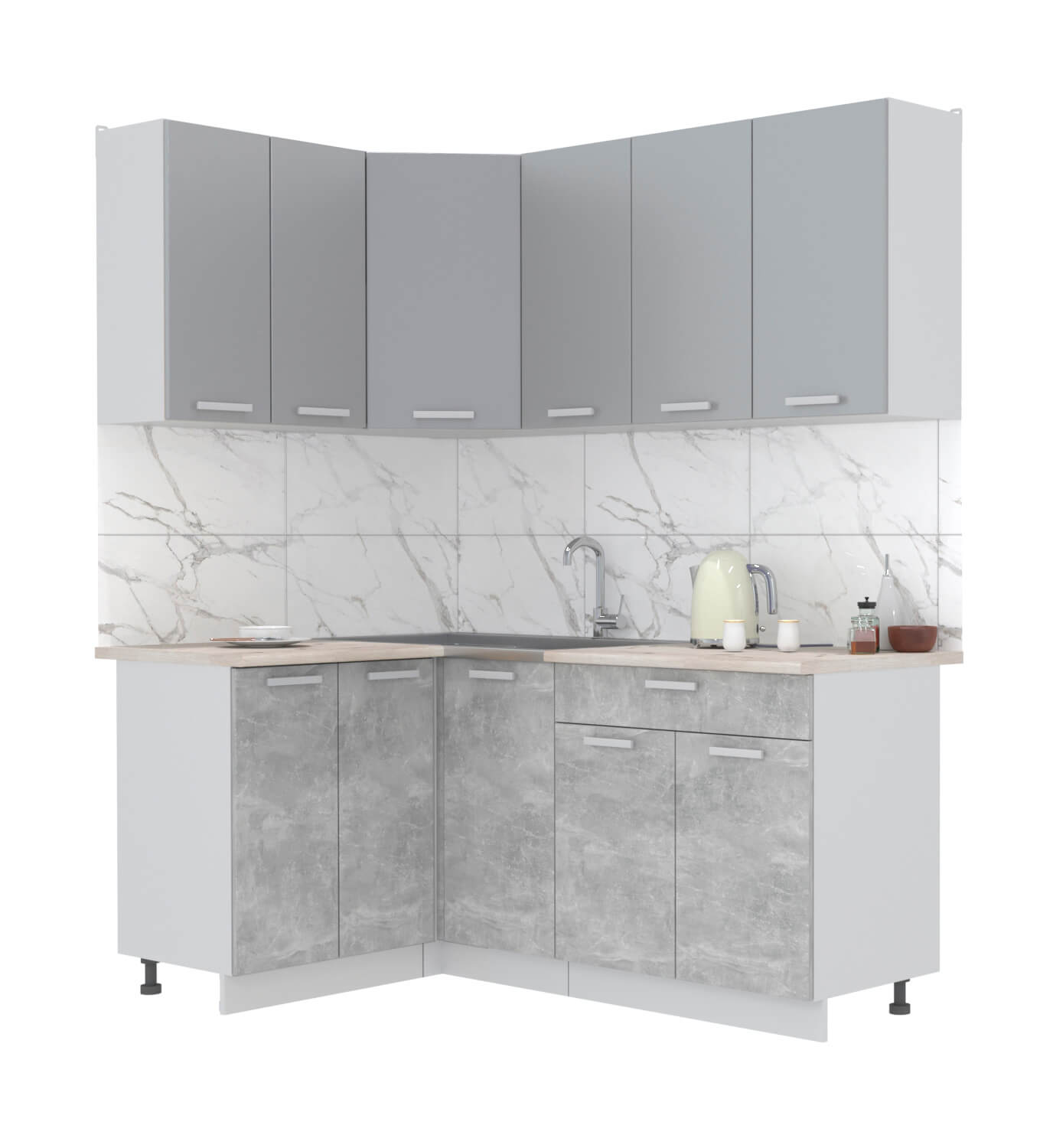 ГОТОВАЯ КУХНЯ ЛАЙТ 1,2X1,8 (СЕРЕБРО/ БЕТОН) - Yuta.by
