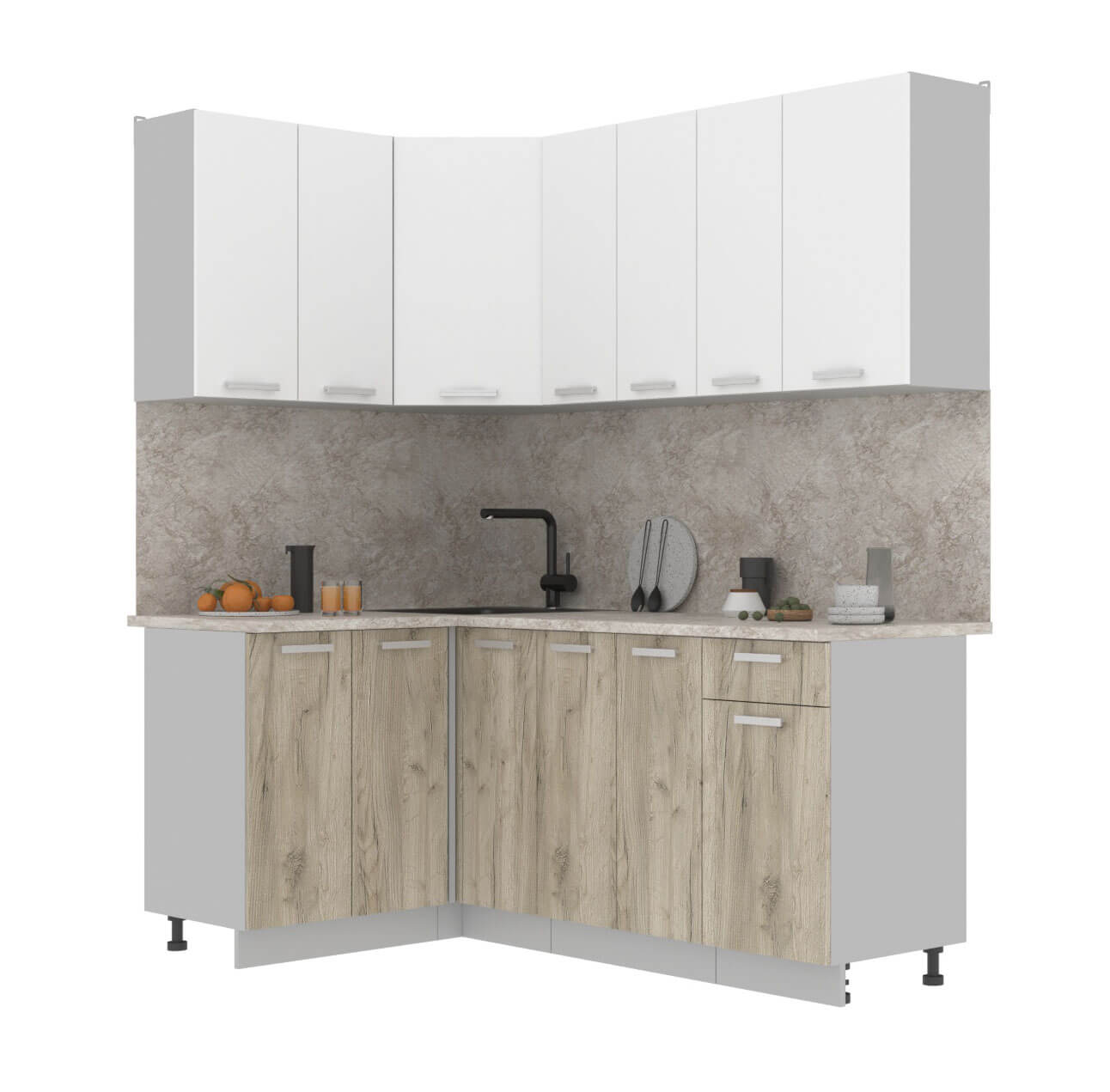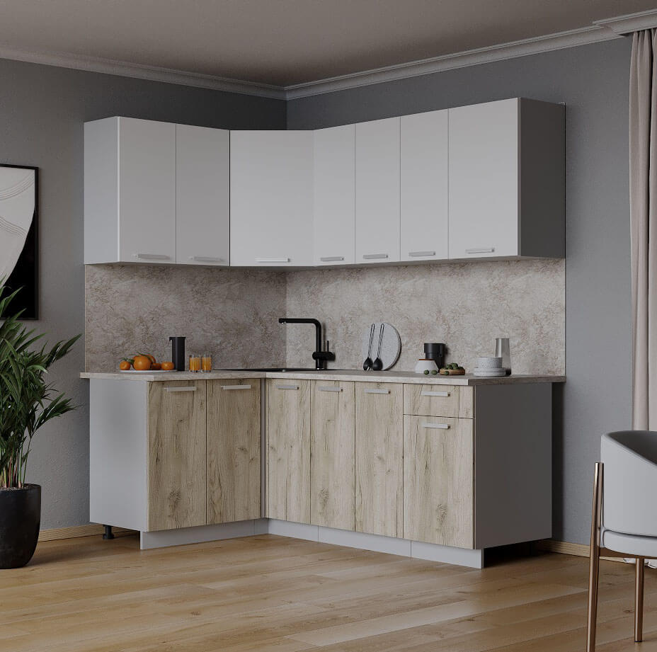 ГОТОВАЯ КУХНЯ ЛАЙТ 1,2X1,9 (БЕЛЫЙ/ ДУБ СЕРЫЙ) - Yuta.by