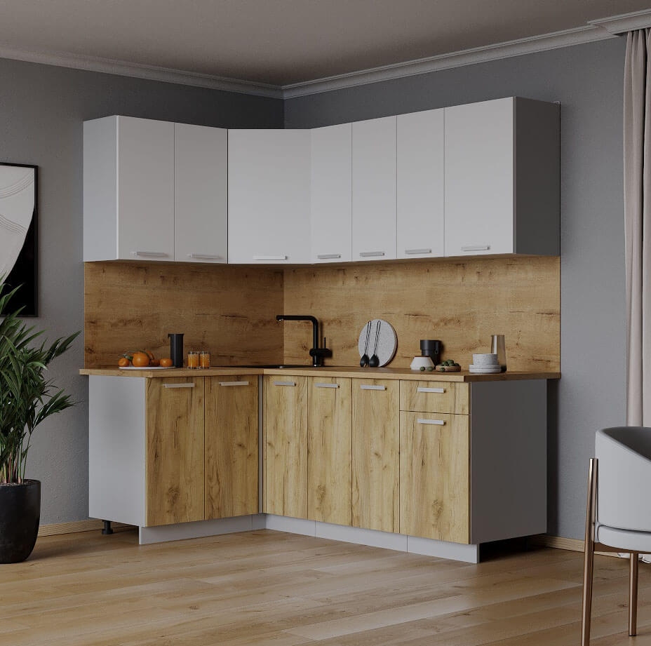 ГОТОВАЯ КУХНЯ ЛАЙТ 1,2X1,9 (БЕЛЫЙ/ ДУБ ЗОЛОТОЙ) - Yuta.by