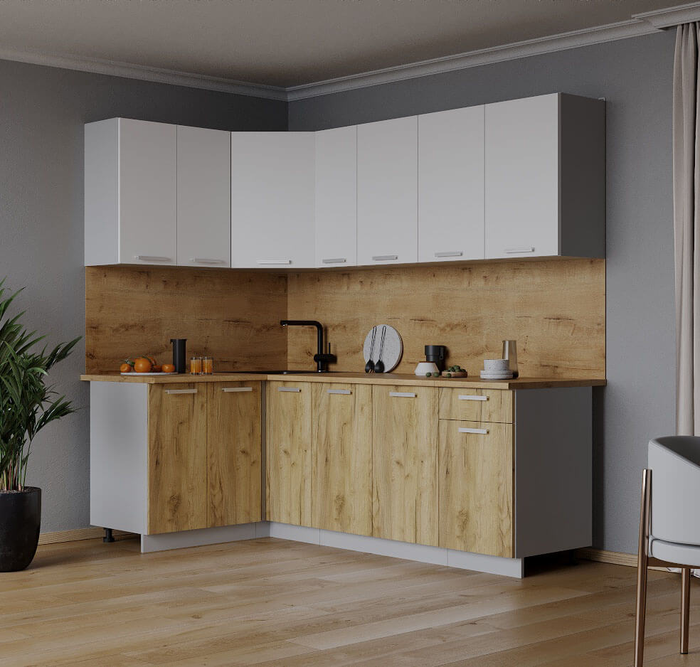 ГОТОВАЯ КУХНЯ ЛАЙТ 1,2X2,1 (БЕЛЫЙ/ ДУБ ЗОЛОТОЙ) - Yuta.by