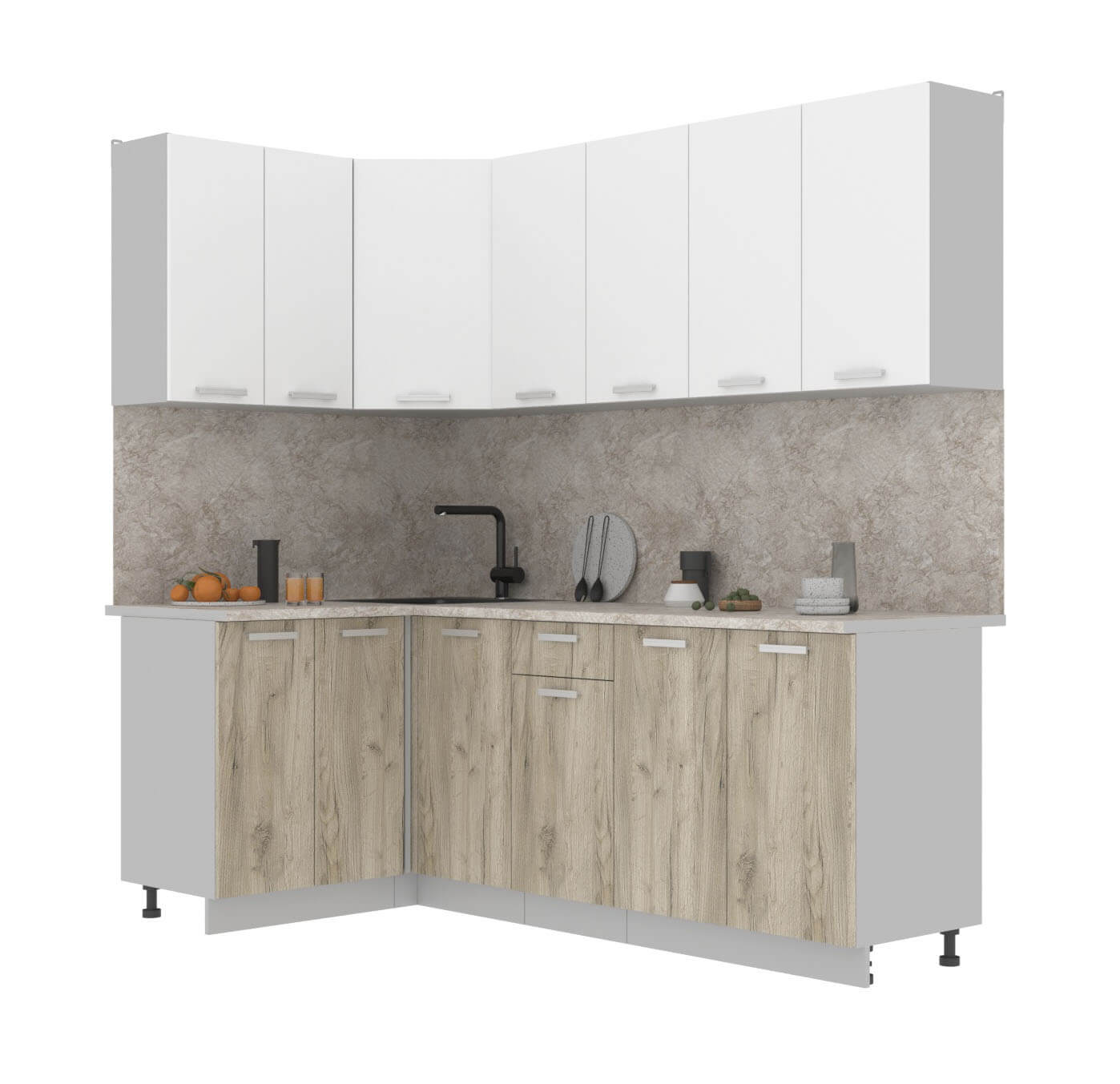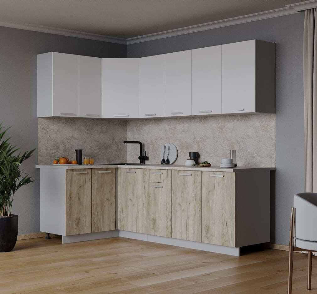 ГОТОВАЯ КУХНЯ ЛАЙТ 1,2X2,2 (БЕЛЫЙ/ ДУБ СЕРЫЙ) - Yuta.by