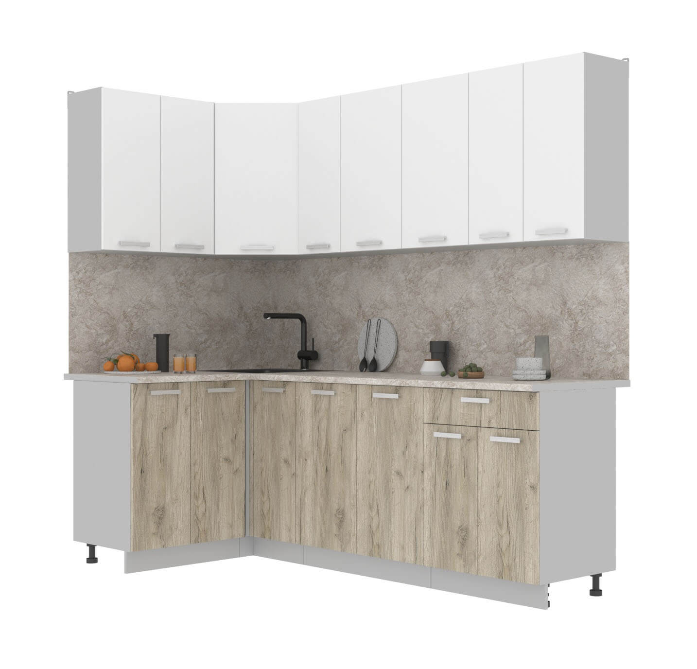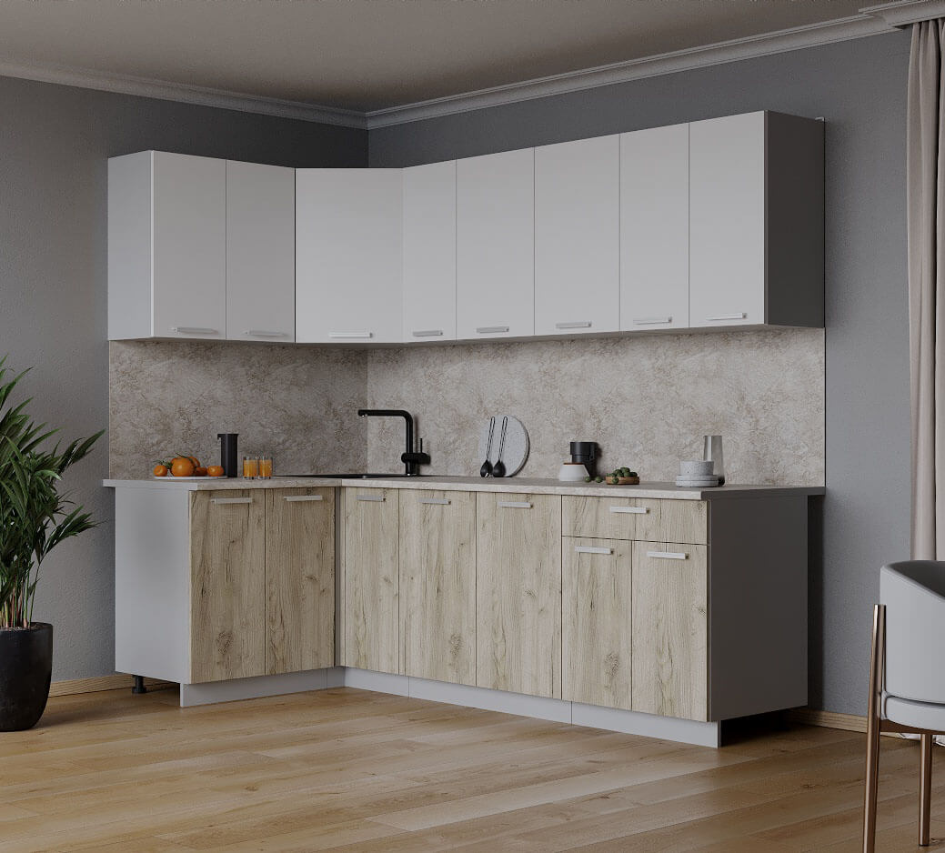 ГОТОВАЯ КУХНЯ ЛАЙТ 1,2X2,3 (БЕЛЫЙ/ ДУБ СЕРЫЙ) - Yuta.by