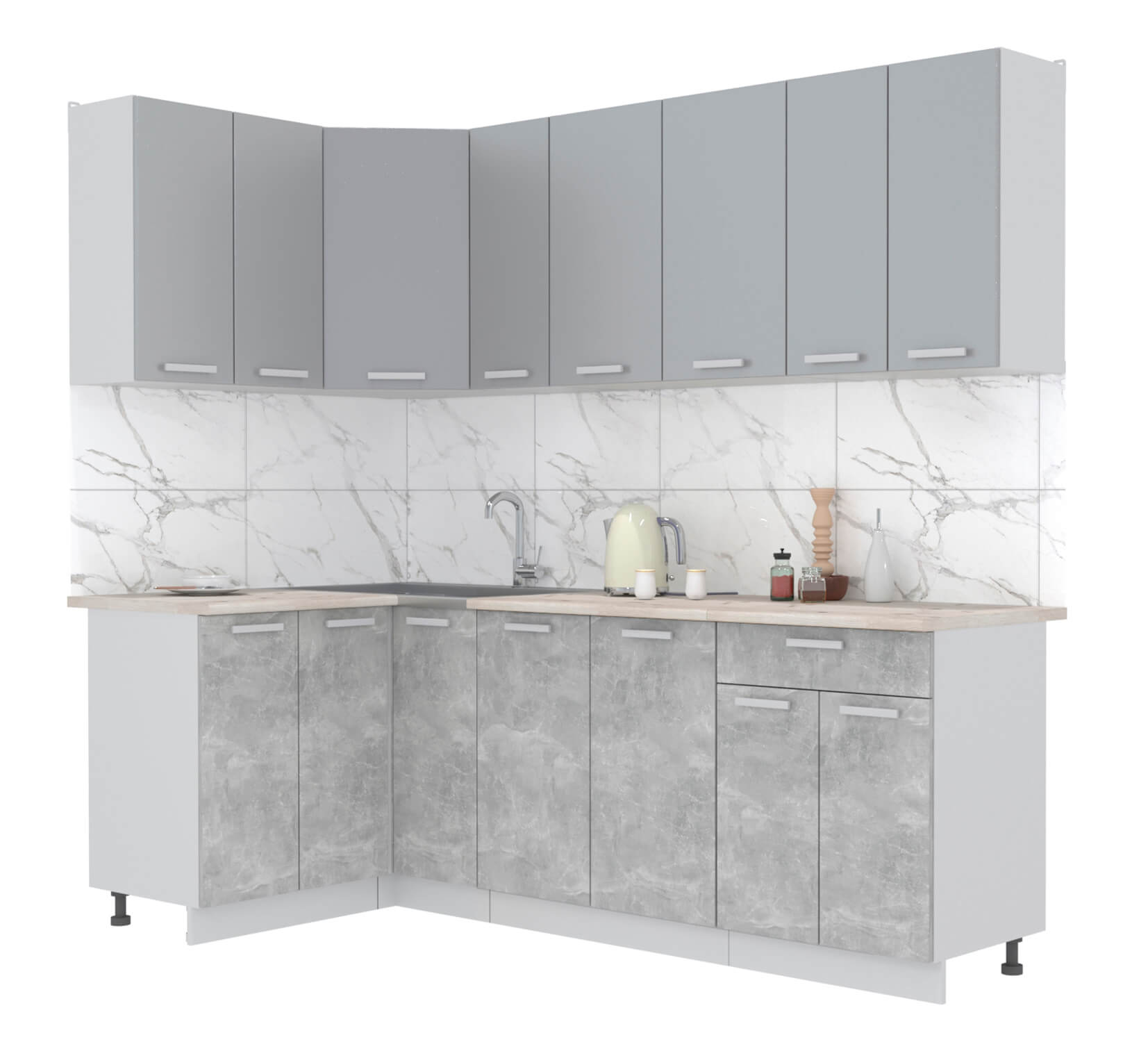 ГОТОВАЯ КУХНЯ ЛАЙТ 1,2X2,3 (СЕРЕБРО/ БЕТОН) - Yuta.by
