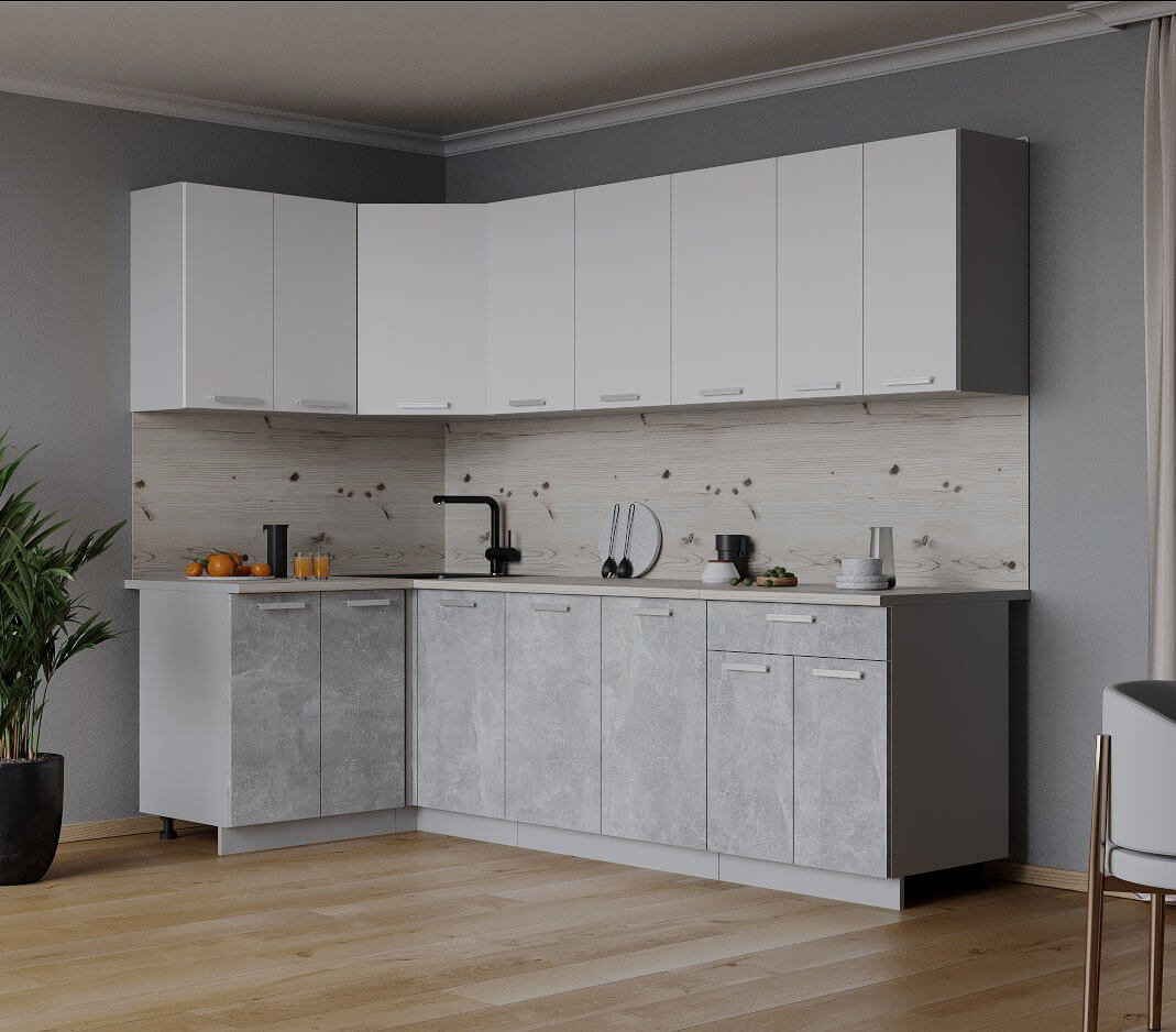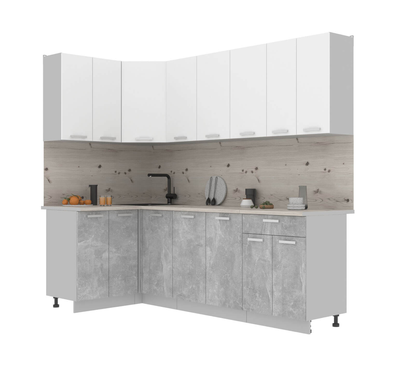 ГОТОВАЯ КУХНЯ ЛАЙТ 1,2X2,4 (БЕЛЫЙ/ БЕТОН) - Yuta.by