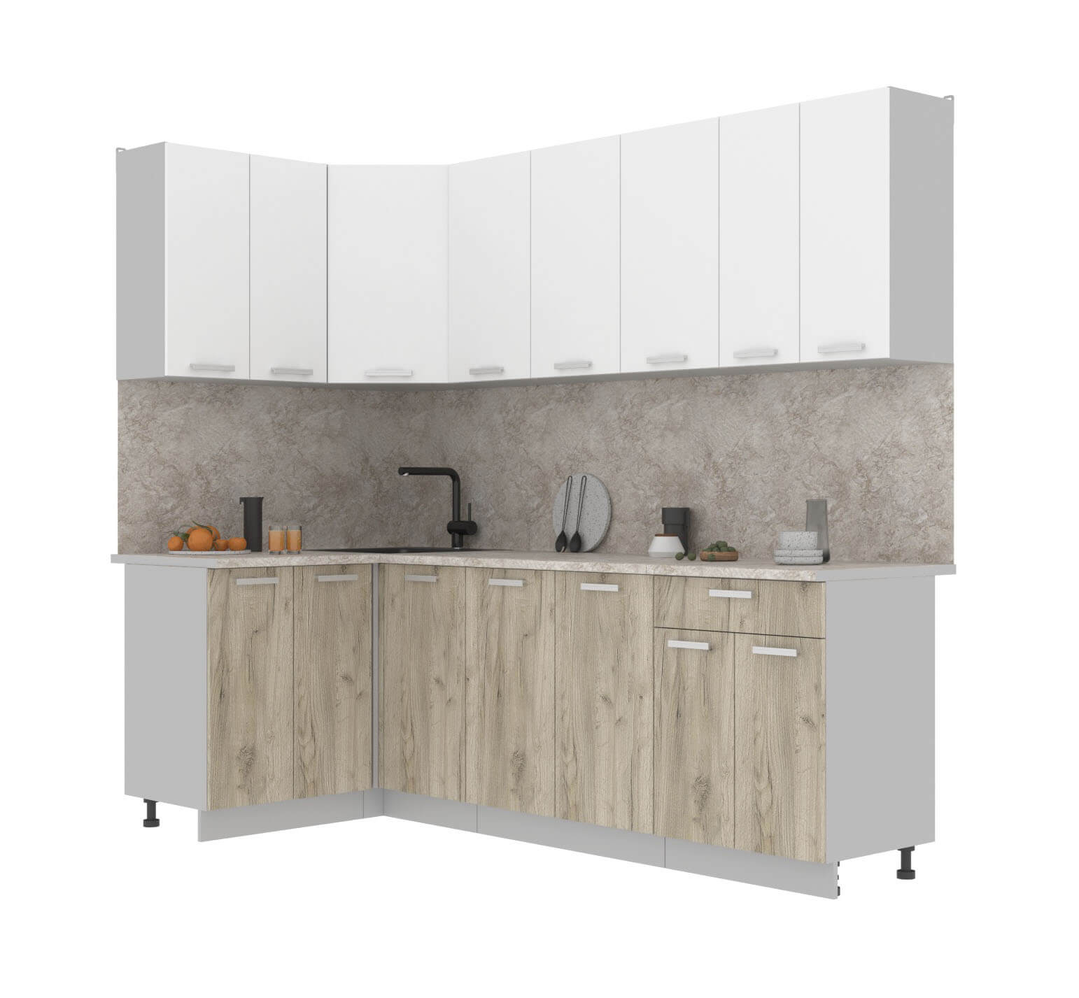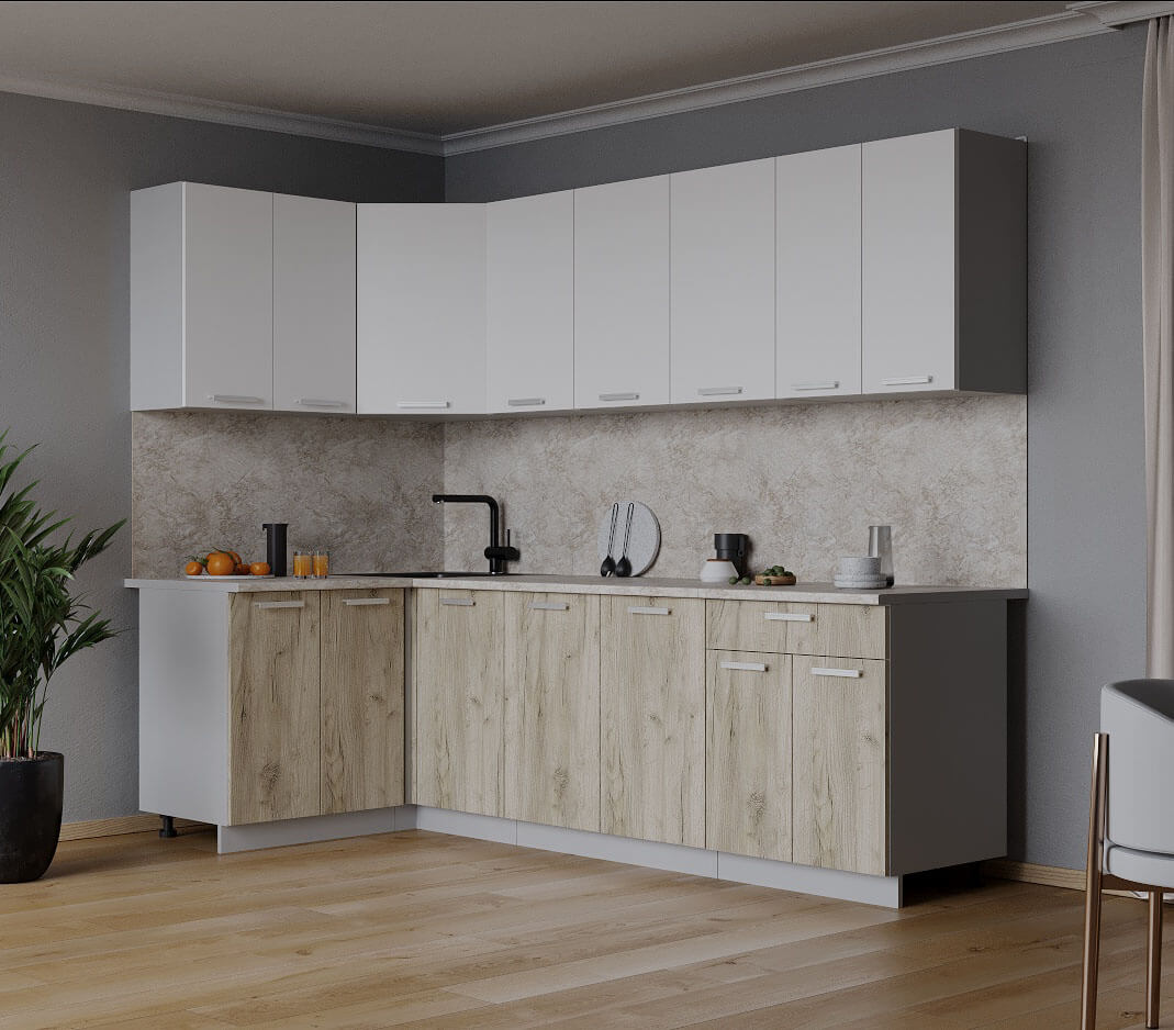 ГОТОВАЯ КУХНЯ ЛАЙТ 1,2X2,4 (БЕЛЫЙ/ ДУБ СЕРЫЙ) - Yuta.by