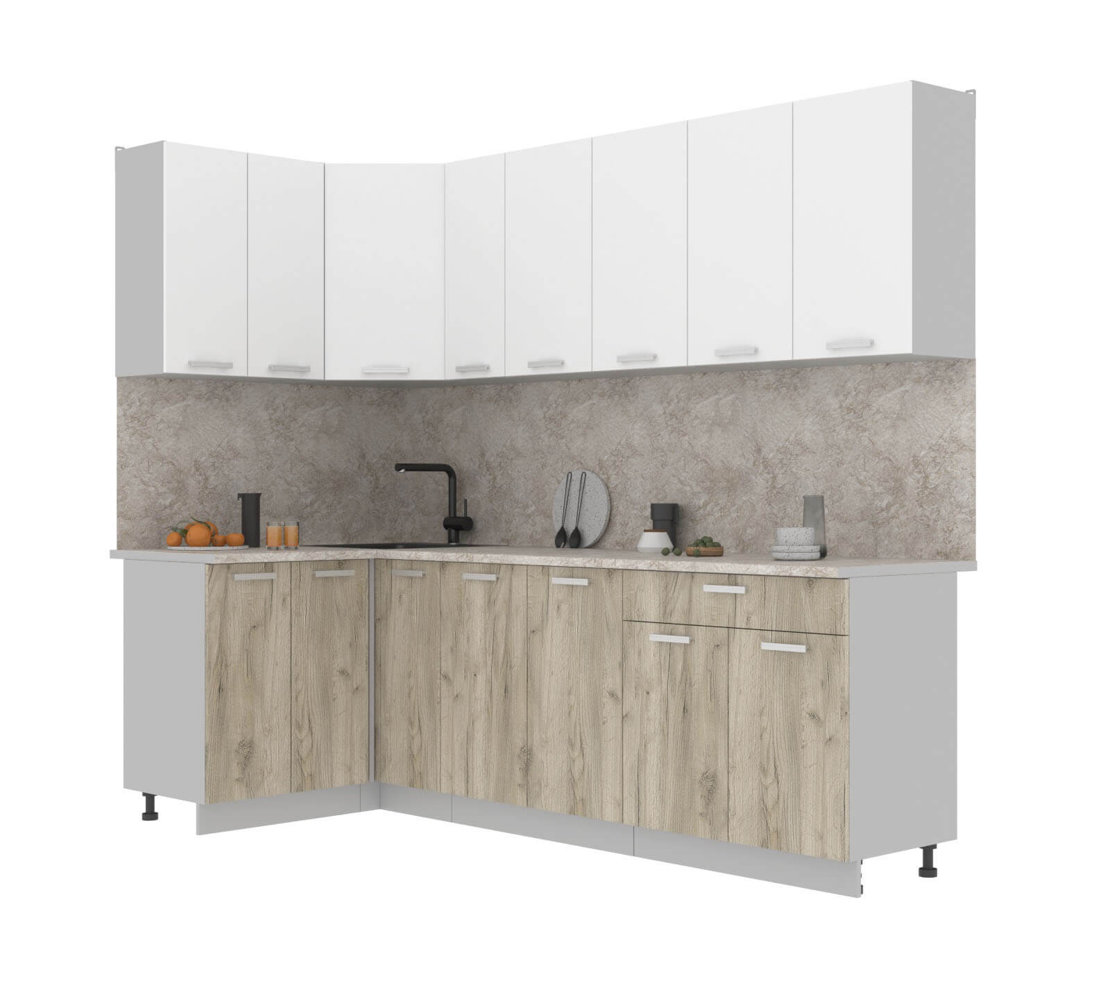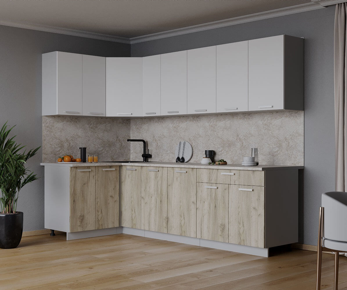 ГОТОВАЯ КУХНЯ ЛАЙТ 1,2X2,5 (БЕЛЫЙ/ ДУБ СЕРЫЙ) - Yuta.by
