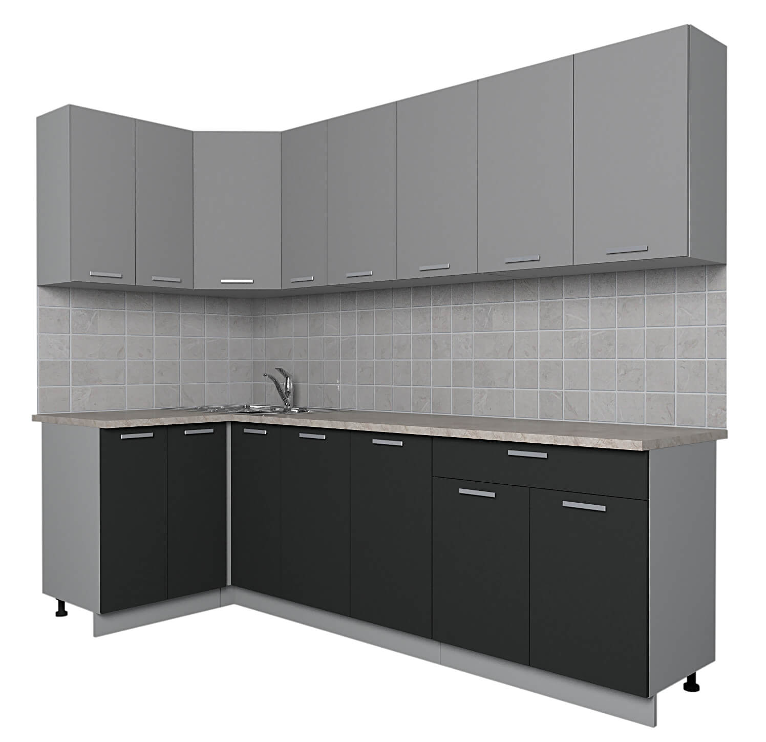 ГОТОВАЯ КУХНЯ ЛАЙТ 1,2X2,5 (СЕРЕБРО/ АНТРАЦИТ) - Yuta.by