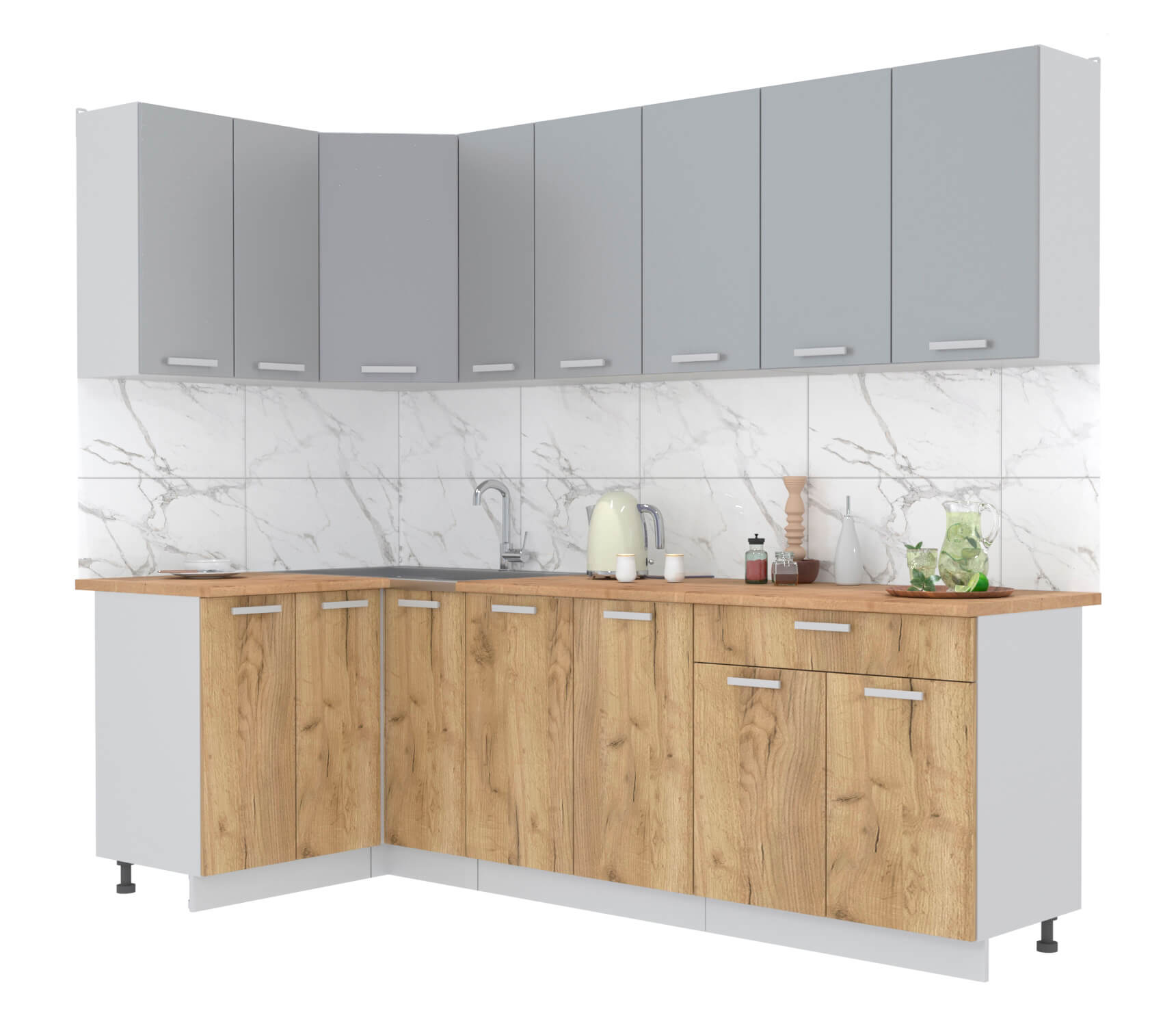 ГОТОВАЯ КУХНЯ ЛАЙТ 1,2X2,5 (СЕРЕБРО/ ДУБ ЗОЛОТОЙ) - Yuta.by