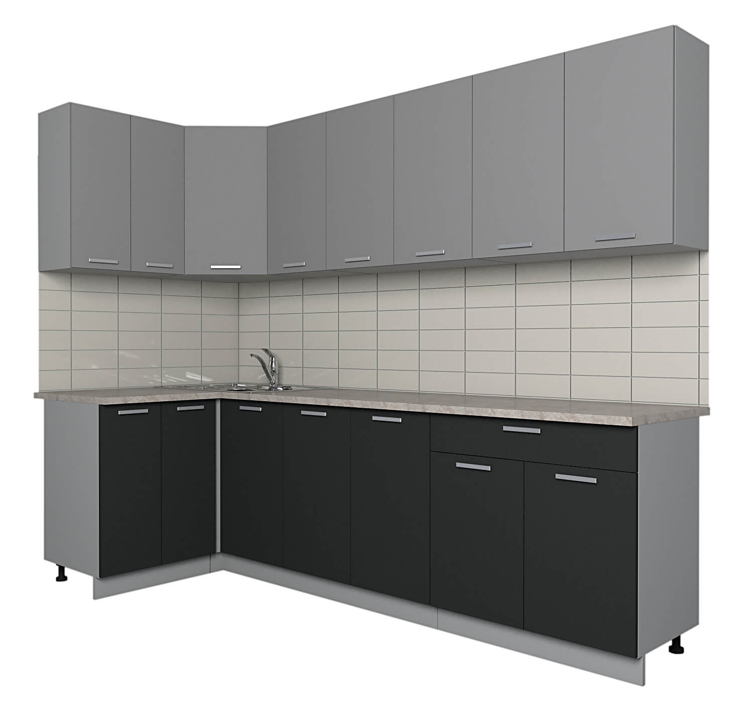 ГОТОВАЯ КУХНЯ ЛАЙТ 1,2X2,6 (СЕРЕБРО/ АНТРАЦИТ) - Yuta.by