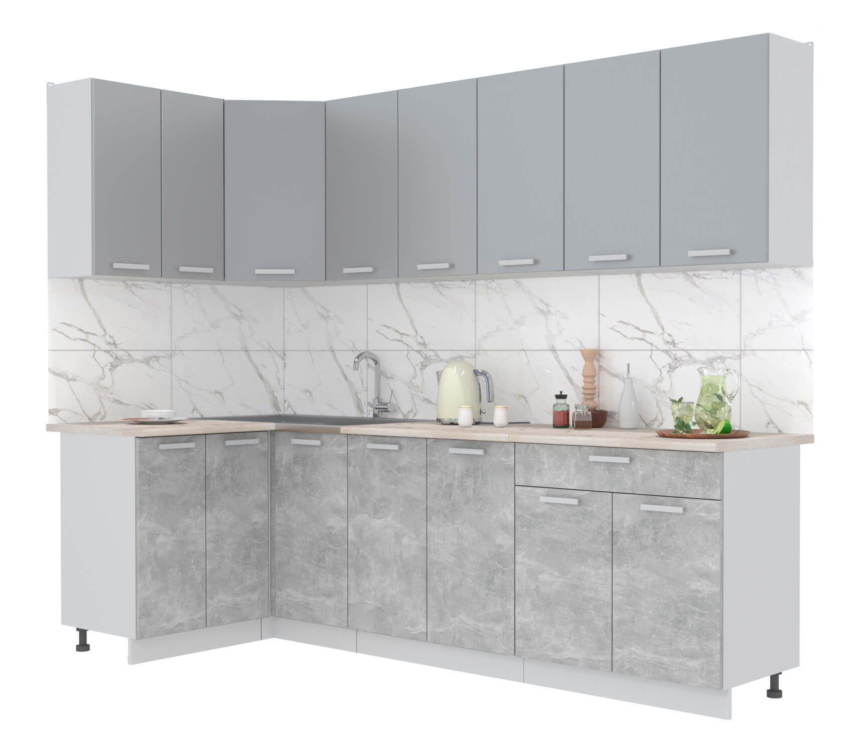 ГОТОВАЯ КУХНЯ ЛАЙТ 1,2X2,6 (СЕРЕБРО/ БЕТОН) - Yuta.by
