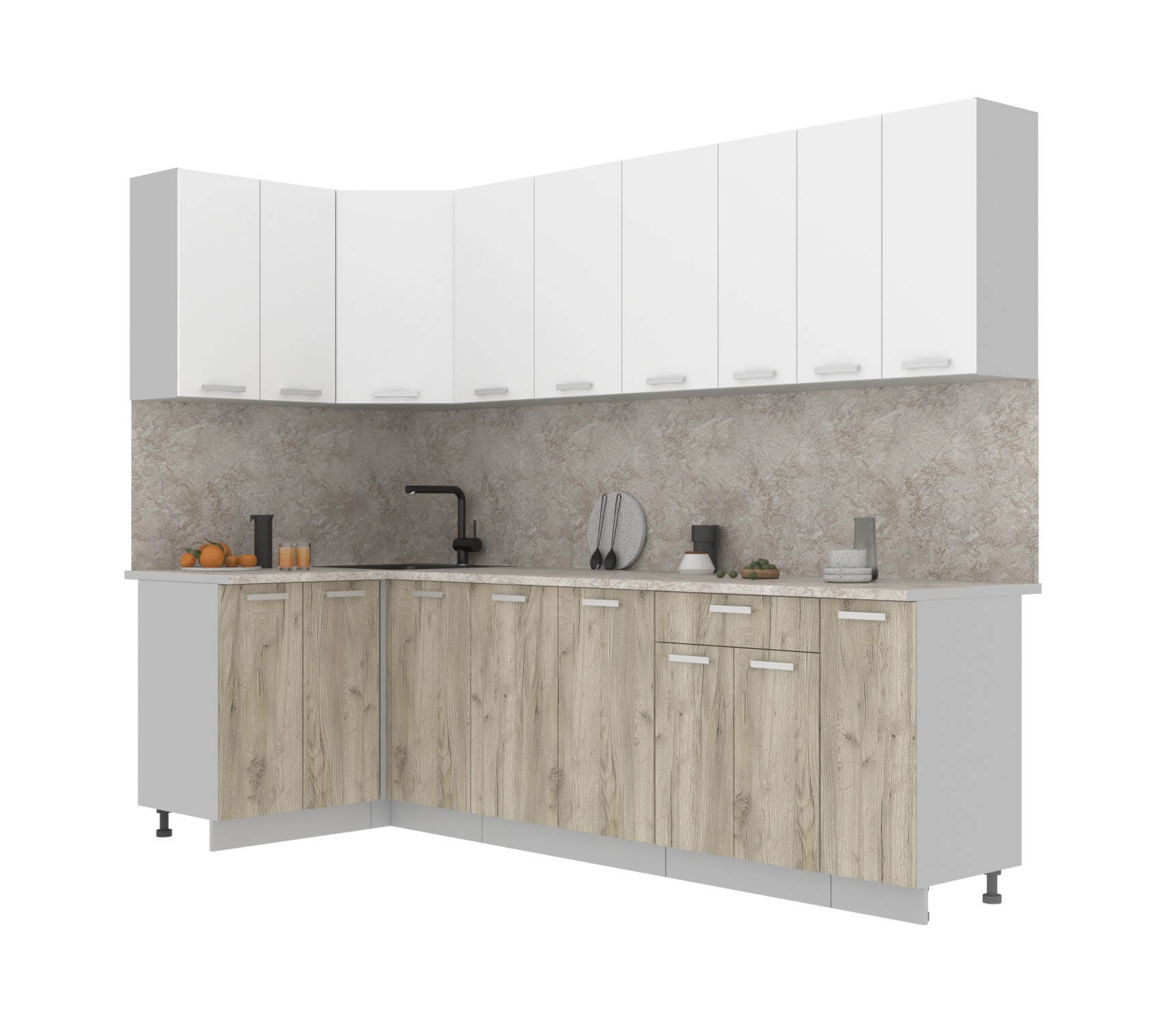 ГОТОВАЯ КУХНЯ ЛАЙТ 1,2X2,7 (БЕЛЫЙ/ ДУБ СЕРЫЙ) - Yuta.by