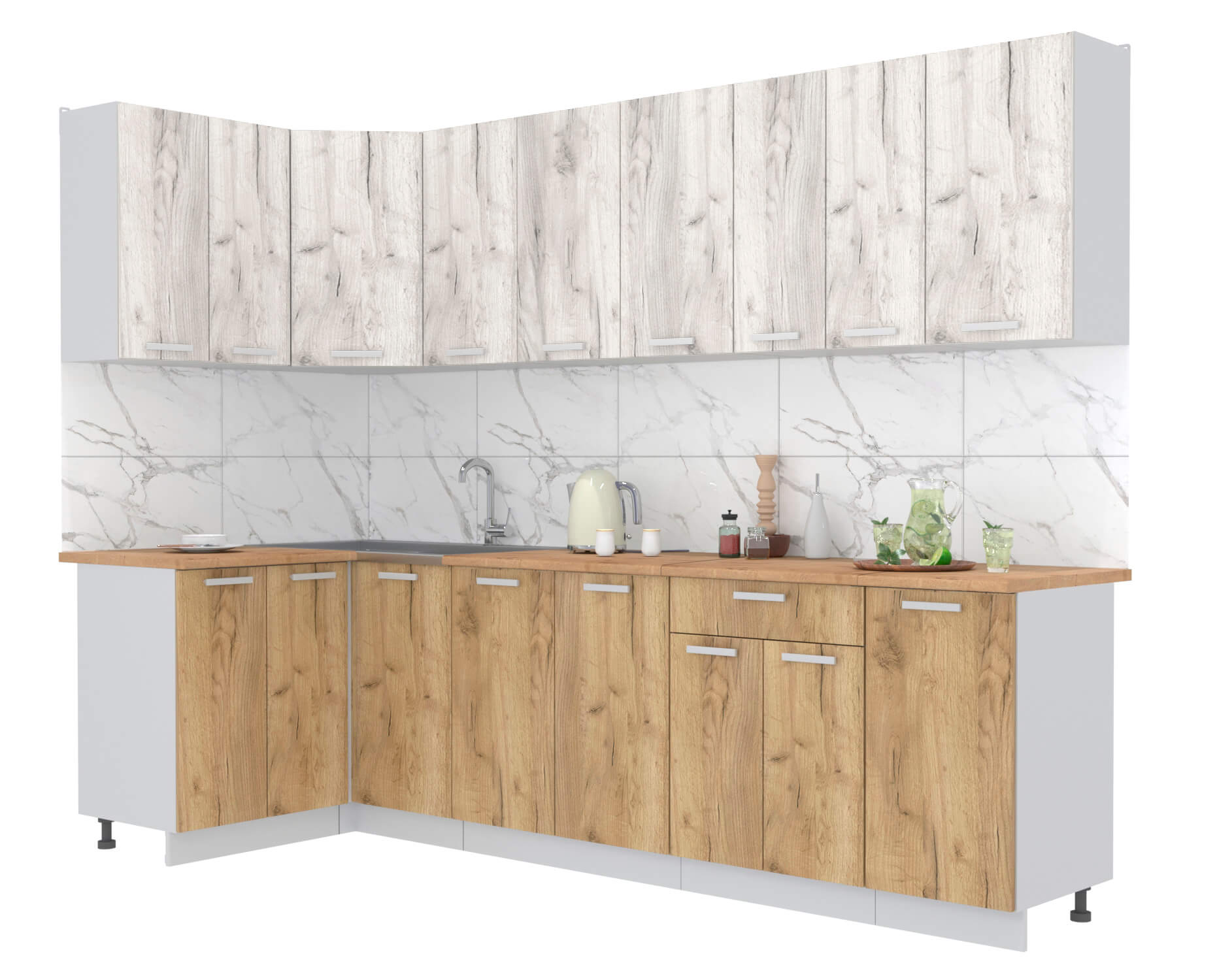 ГОТОВАЯ КУХНЯ ЛАЙТ 1,2X2,8 (ДУБ БЕЛЫЙ/ ДУБ ЗОЛОТОЙ) - Yuta.by