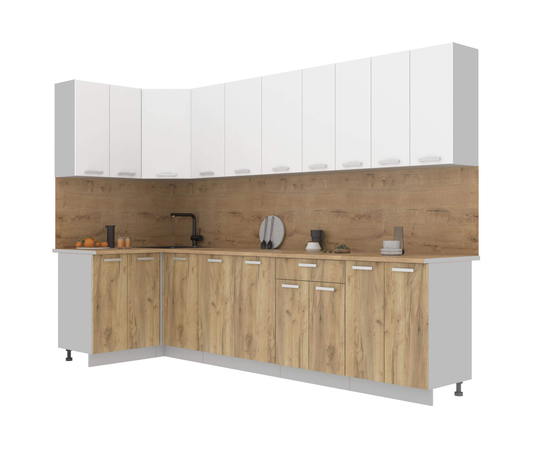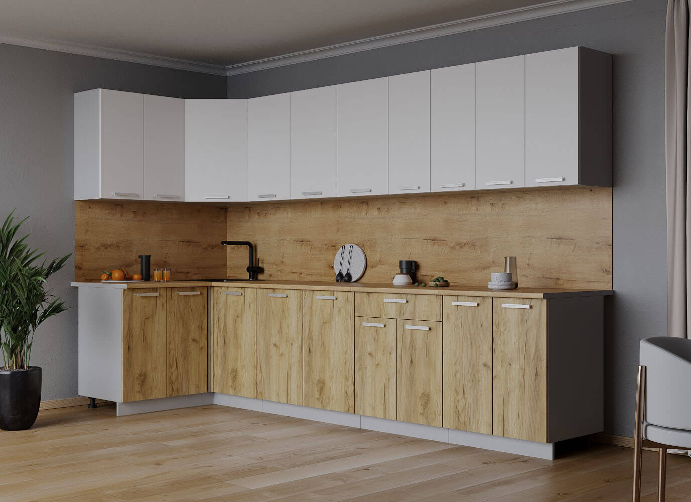 ГОТОВАЯ КУХНЯ ЛАЙТ 1,2X3,0 (БЕЛЫЙ/ ДУБ ЗОЛОТОЙ) - Yuta.by