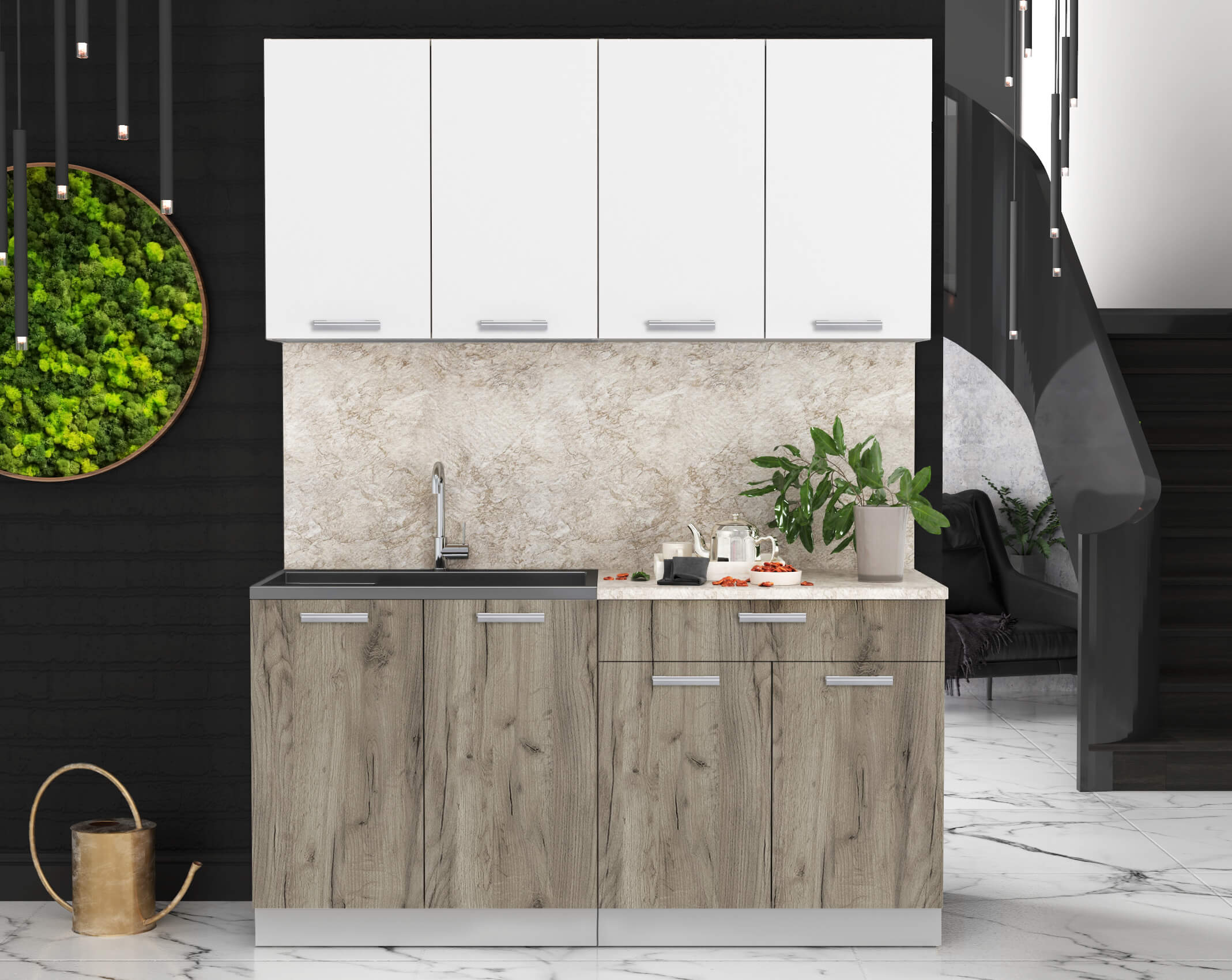 ГОТОВАЯ КУХНЯ ЛАЙТ 1,6 (БЕЛЫЙ/ ДУБ СЕРЫЙ) - Yuta.by