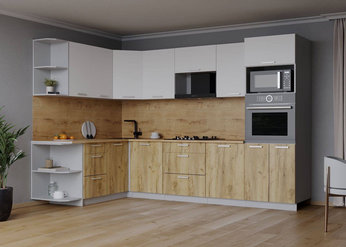 ГОТОВАЯ КУХНЯ ЛАЙТ 1,68Х2,8 (БЕЛЫЙ/ДУБ ЗОЛОТОЙ) - Yuta.by