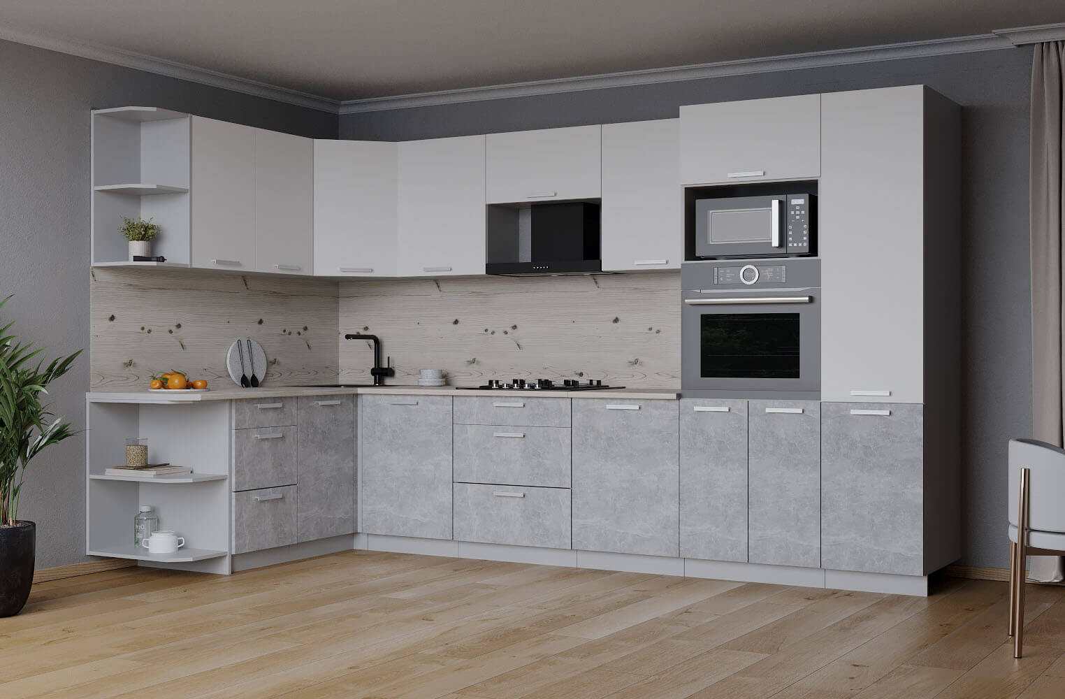 ГОТОВАЯ КУХНЯ ЛАЙТ 1,68Х3,2 (БЕЛЫЙ/БЕТОН) - Yuta.by