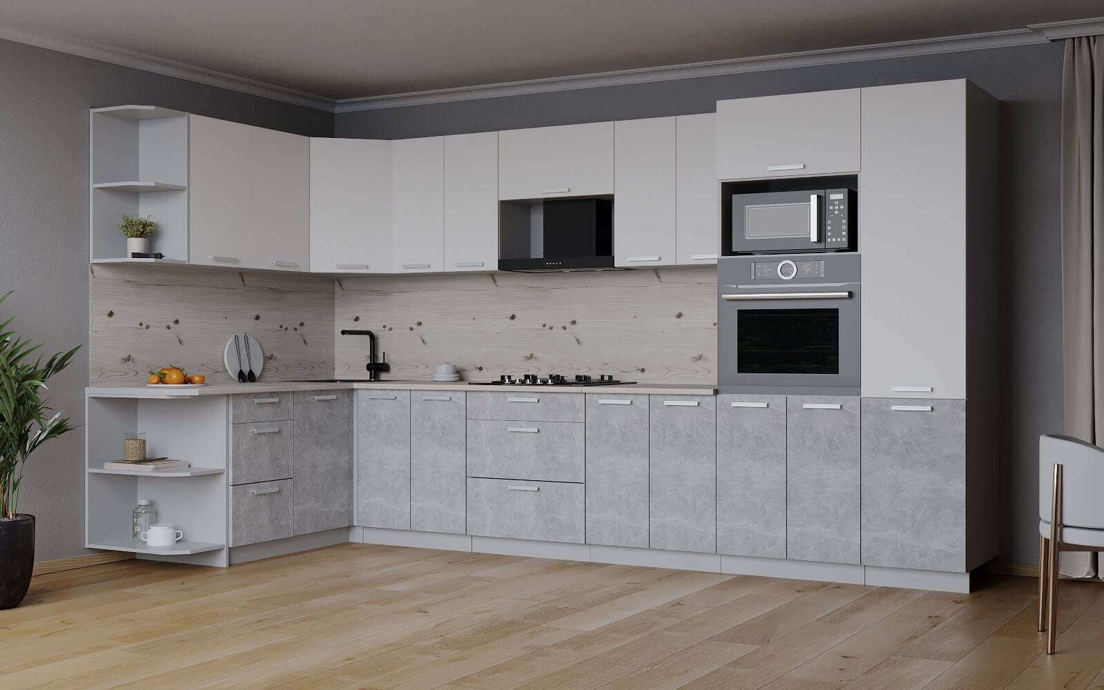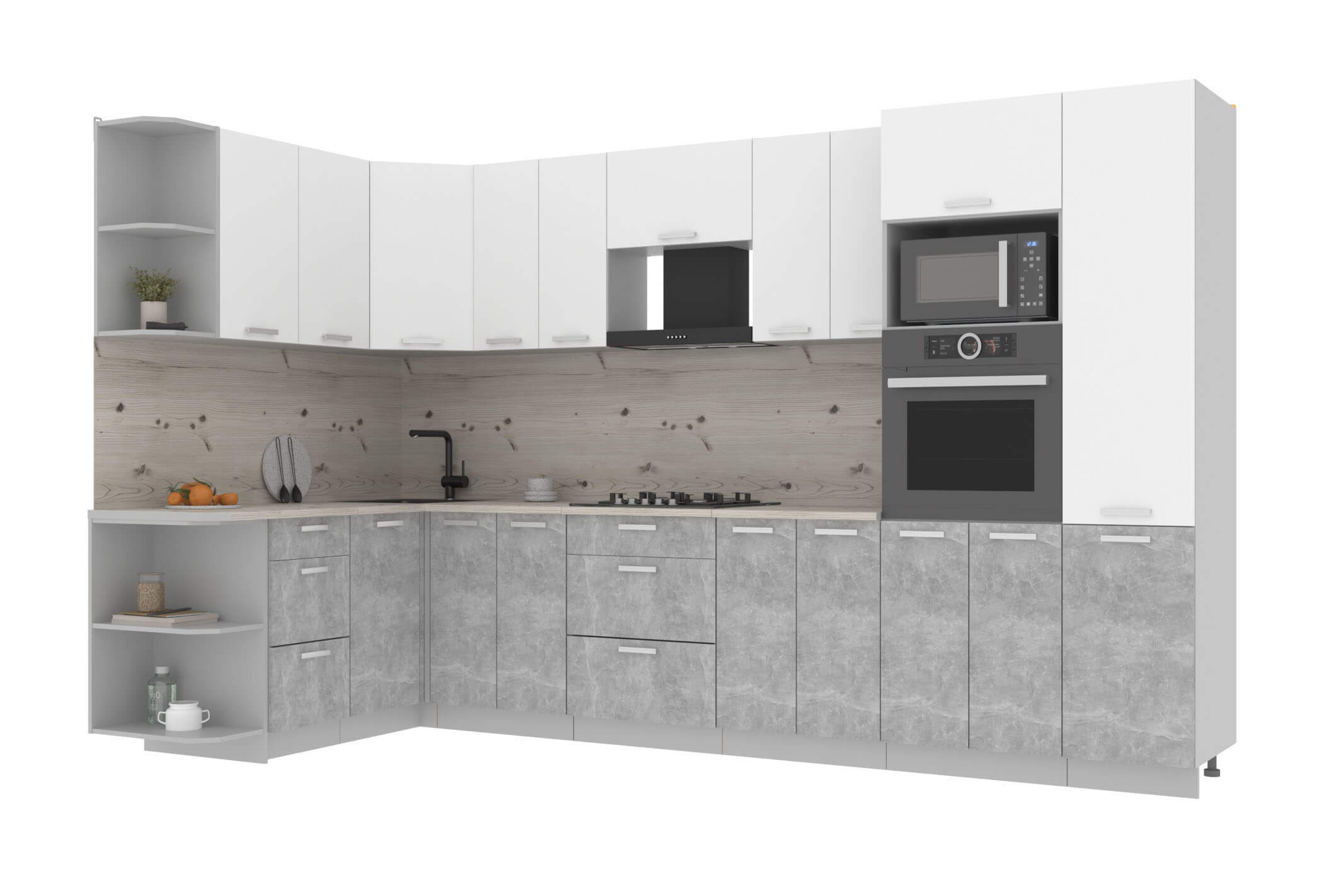 ГОТОВАЯ КУХНЯ ЛАЙТ 1,68Х3,4 (БЕЛЫЙ/БЕТОН) - Yuta.by
