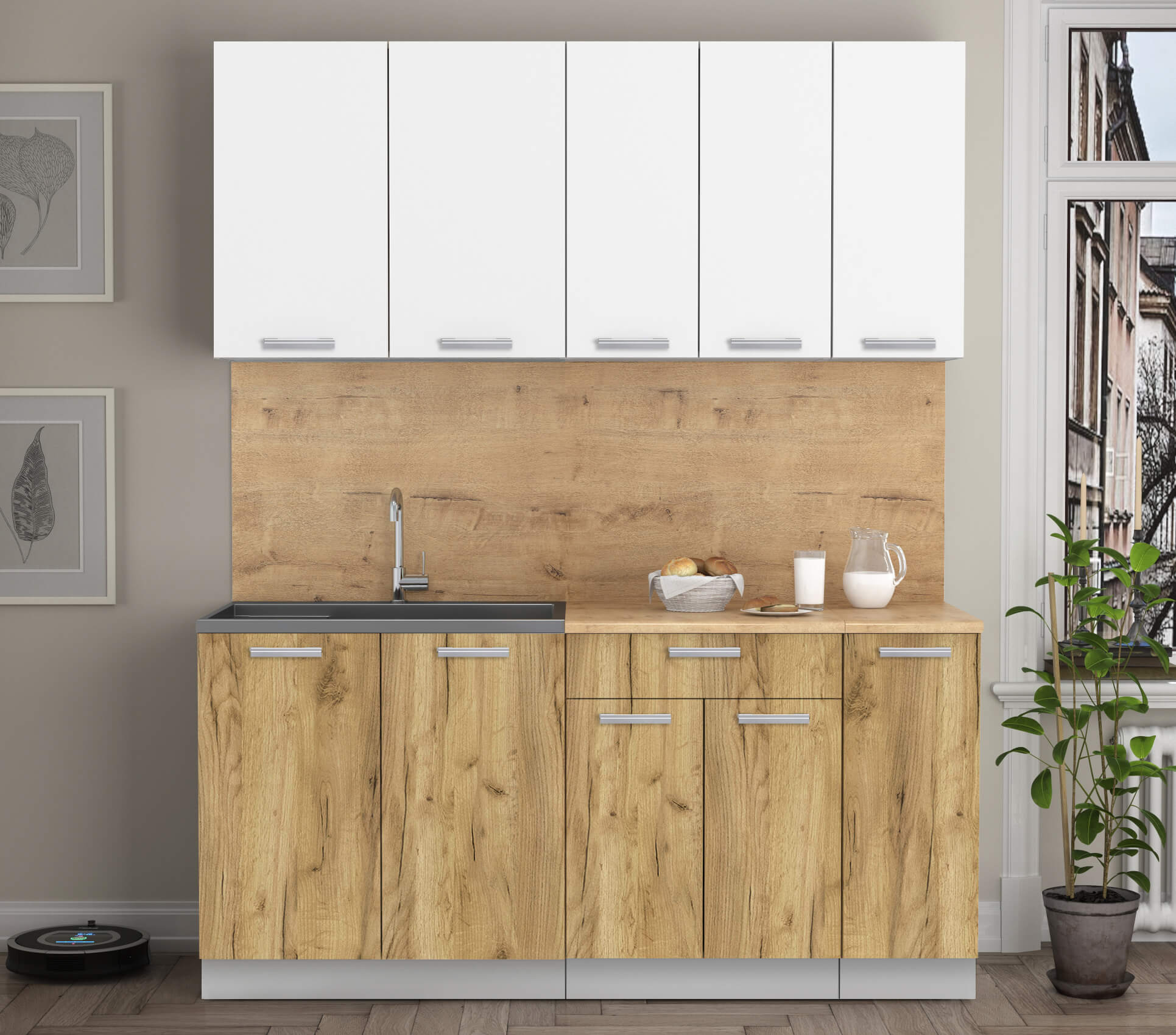 ГОТОВАЯ КУХНЯ ЛАЙТ 1,7 (БЕЛЫЙ/ ДУБ ЗОЛОТОЙ) - Yuta.by