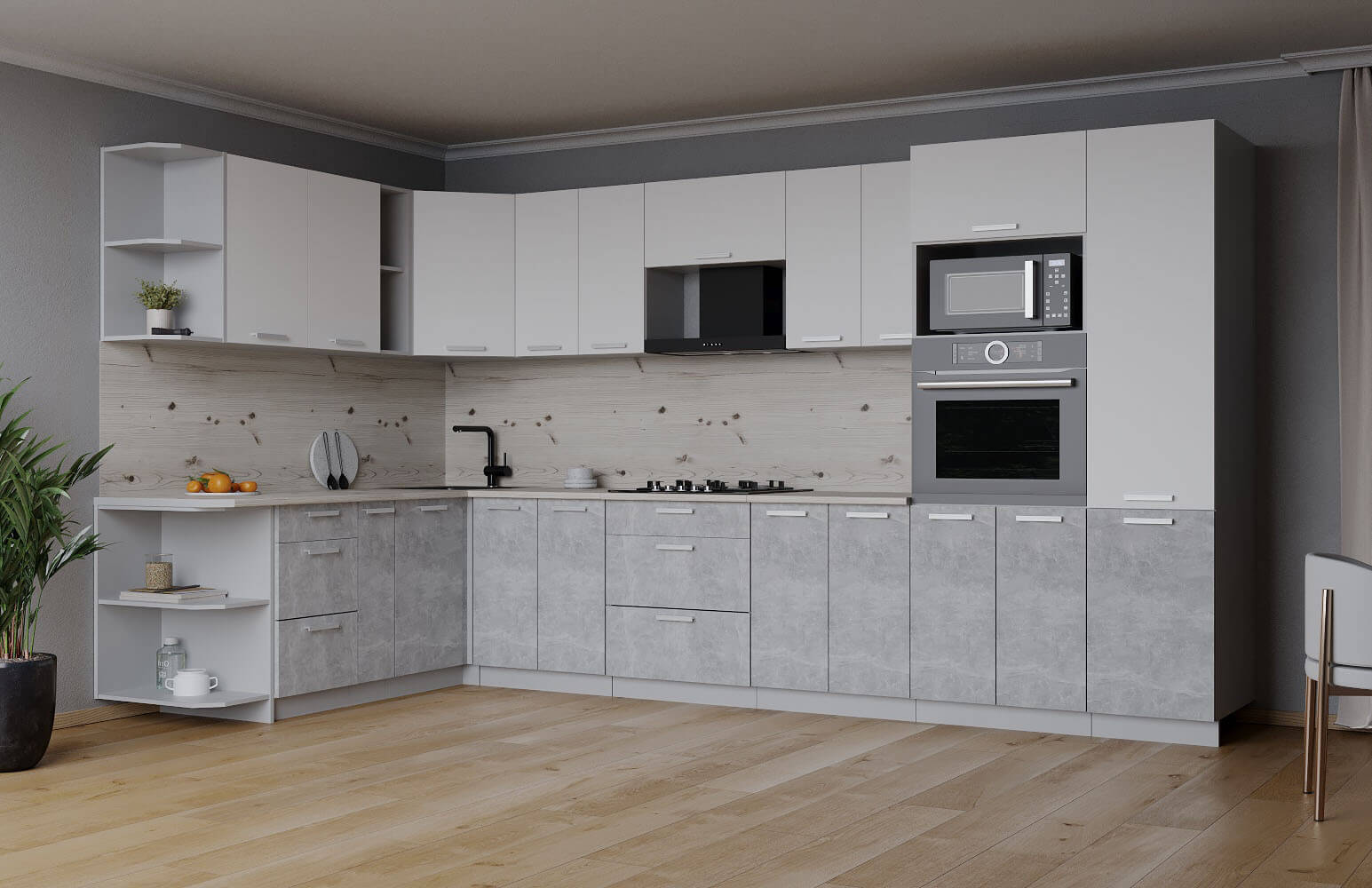 ГОТОВАЯ КУХНЯ ЛАЙТ 1,88Х3,4 (БЕЛЫЙ/БЕТОН) - Yuta.by