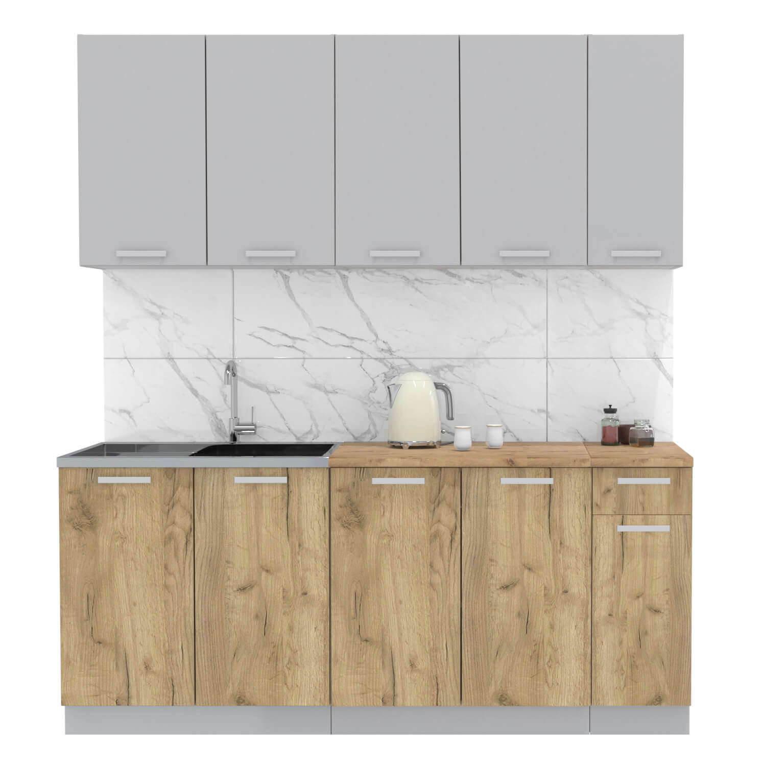 ГОТОВАЯ КУХНЯ ЛАЙТ 1,9 (СЕРЕБРО/ ДУБ ЗОЛОТОЙ) - Yuta.by
