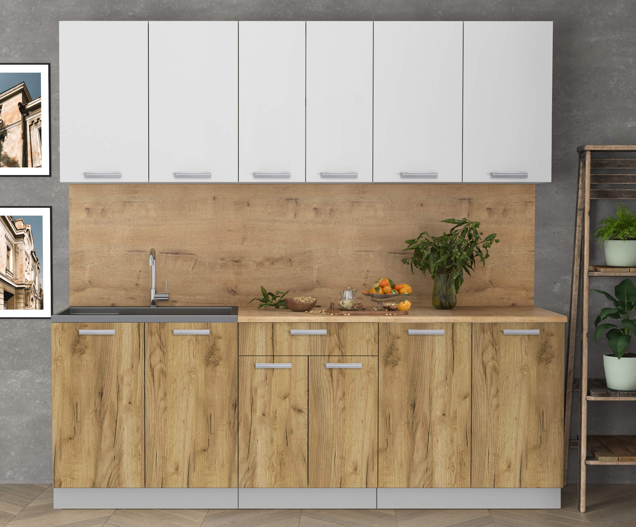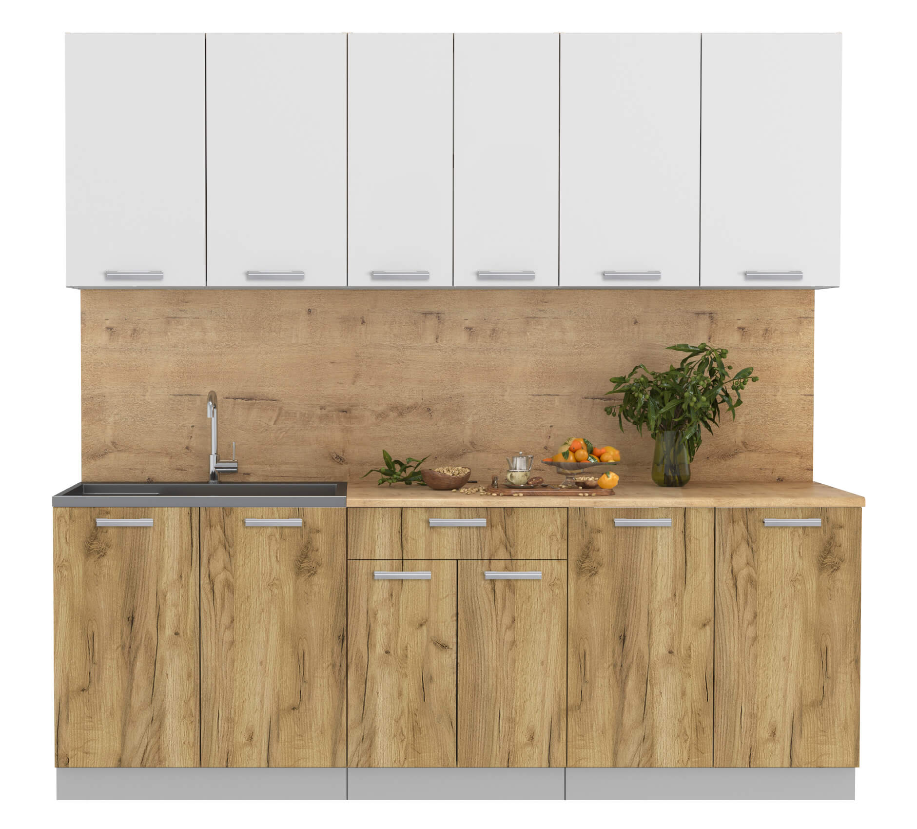 ГОТОВАЯ КУХНЯ ЛАЙТ 2,2 (БЕЛЫЙ/ ДУБ ЗОЛОТОЙ) - Yuta.by