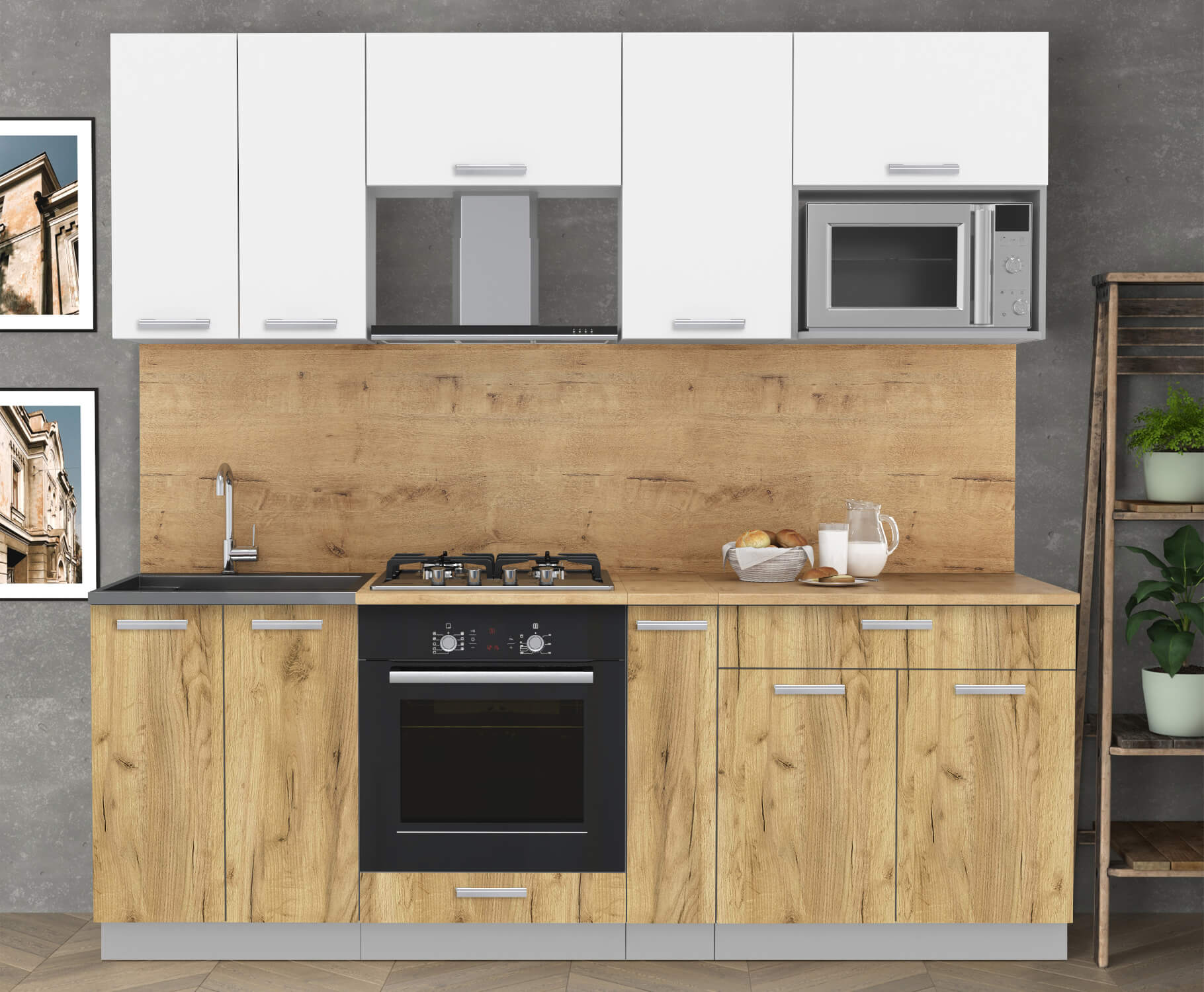 ГОТОВАЯ КУХНЯ ЛАЙТ 2,2ВТ (БЕЛЫЙ/ ДУБ ЗОЛОТОЙ) - Yuta.by