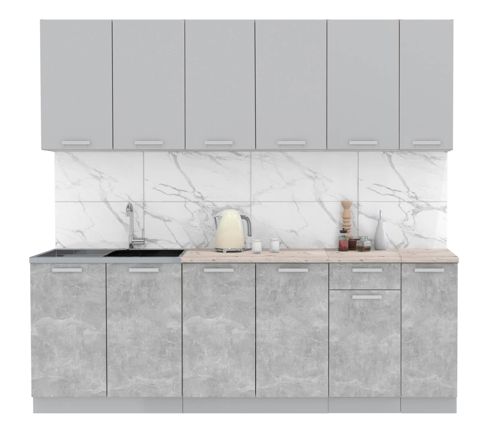 ГОТОВАЯ КУХНЯ ЛАЙТ 2,3 (СЕРЕБРО/ БЕТОН) - Yuta.by