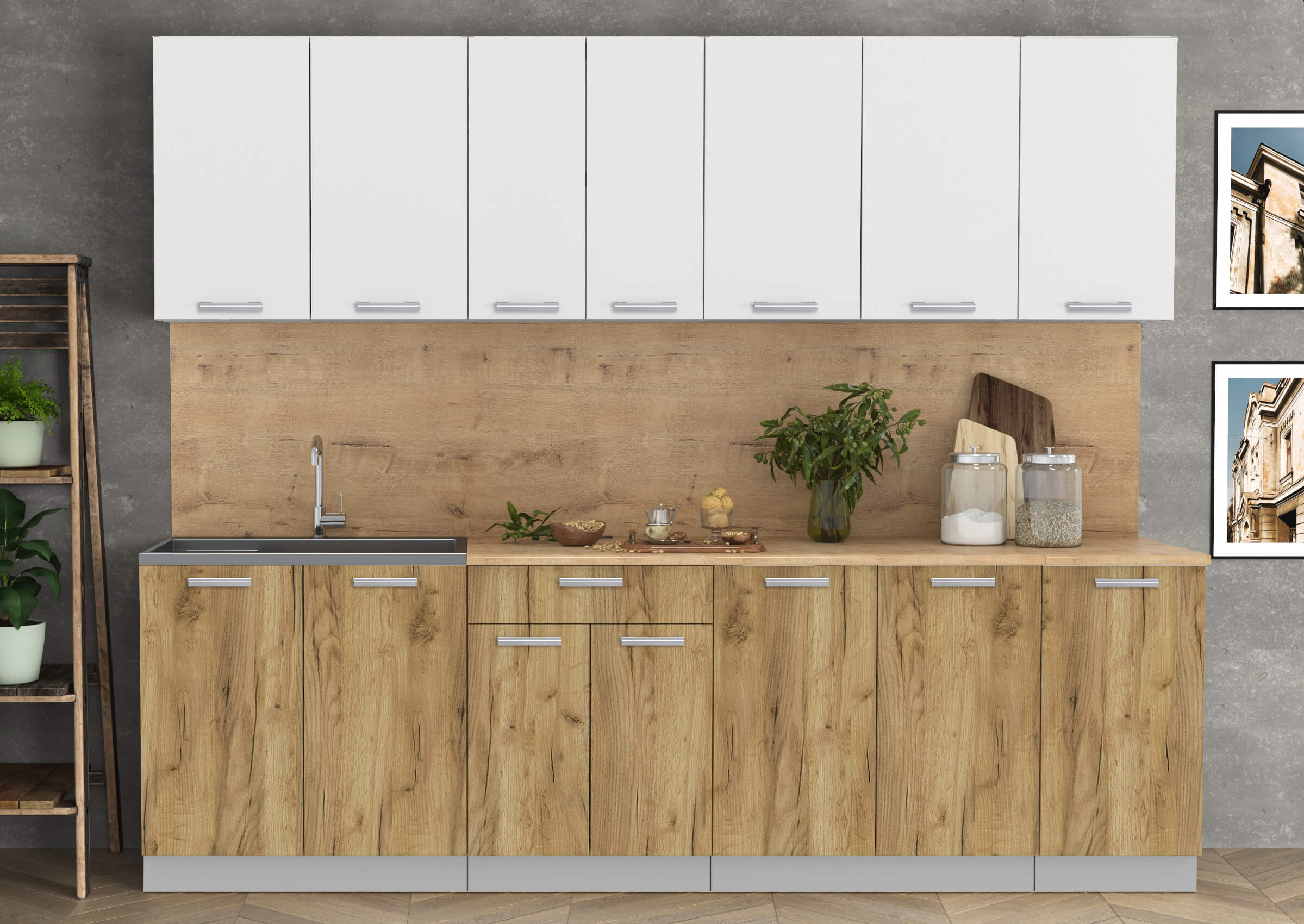 ГОТОВАЯ КУХНЯ ЛАЙТ 2,6 (БЕЛЫЙ/ ДУБ ЗОЛОТОЙ) - Yuta.by