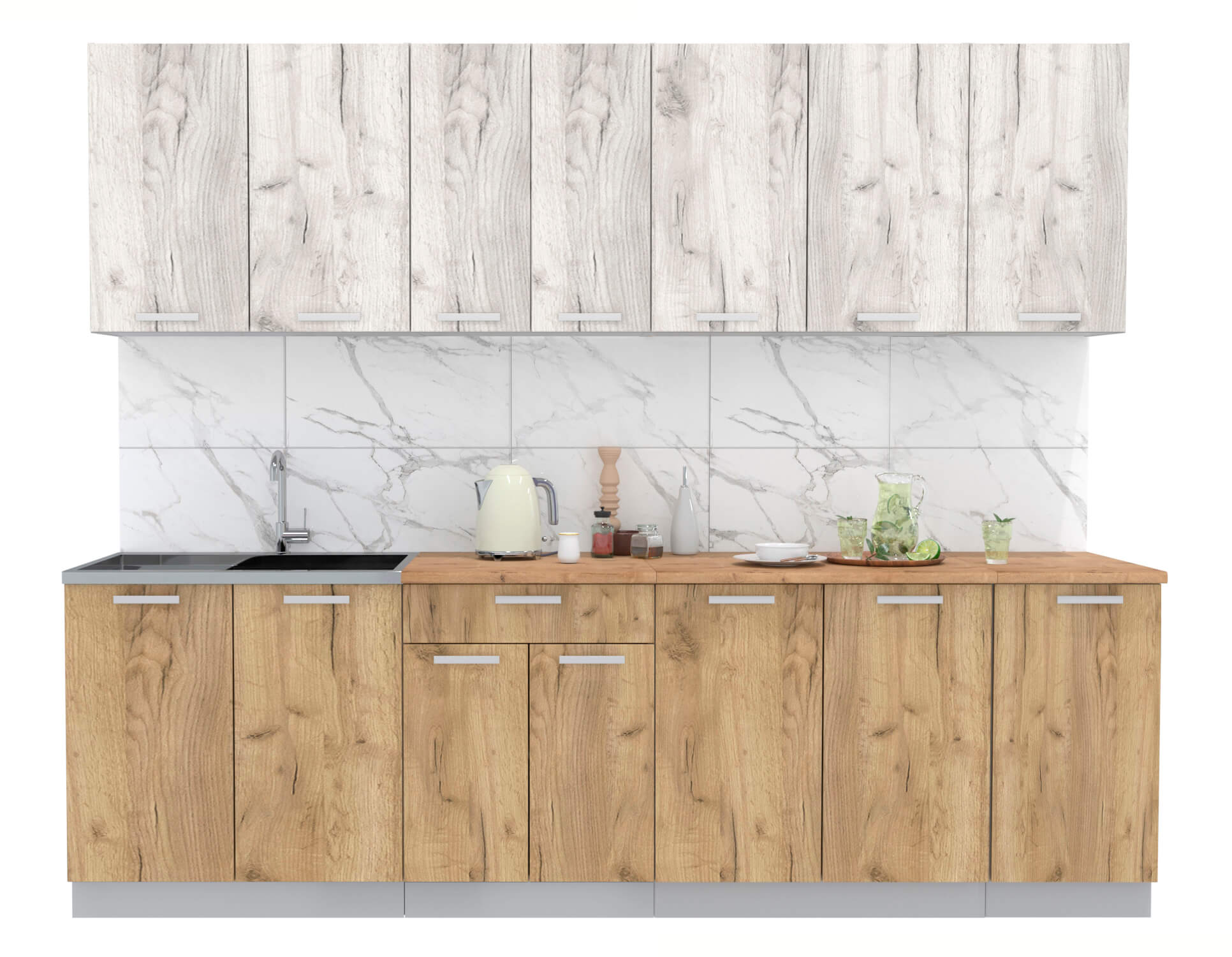 ГОТОВАЯ КУХНЯ ЛАЙТ 2,6 (ДУБ БЕЛЫЙ/ ДУБ ЗОЛОТОЙ) - Yuta.by