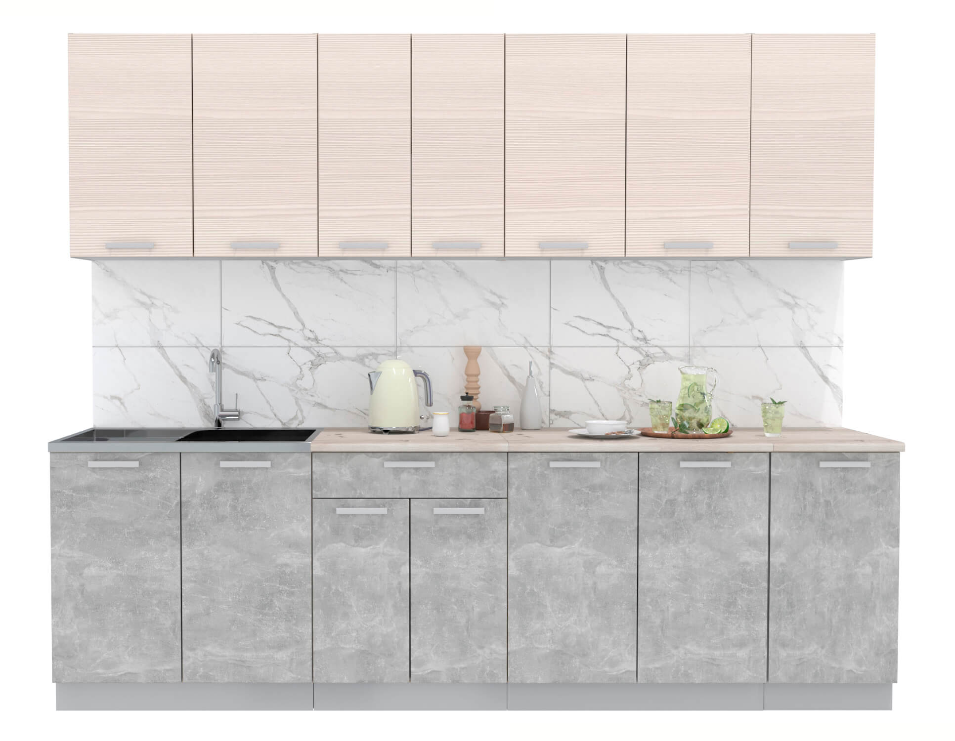 ГОТОВАЯ КУХНЯ ЛАЙТ 2,6 (ВУДЛАЙН КРЕМОВЫЙ/ БЕТОН) - Yuta.by