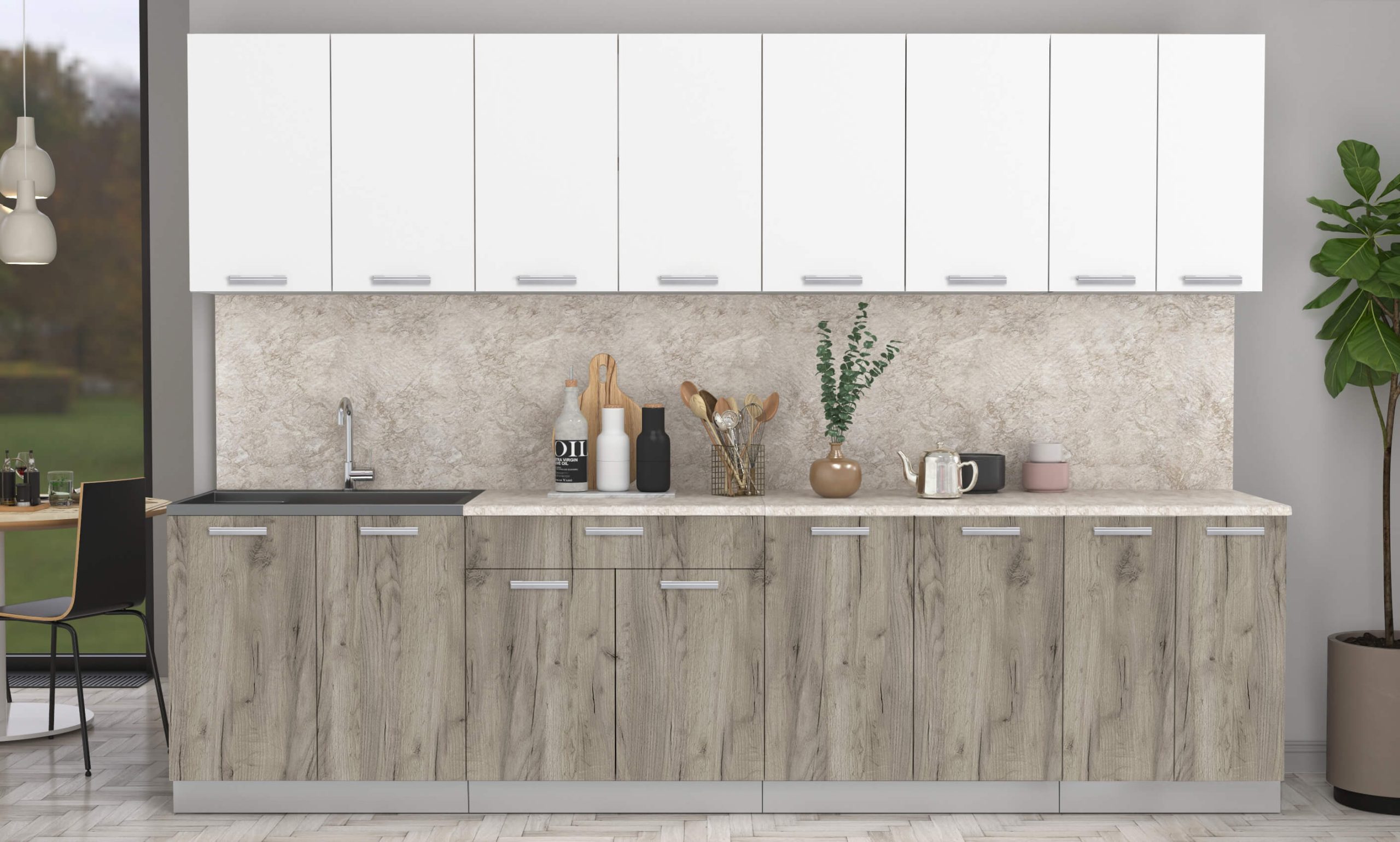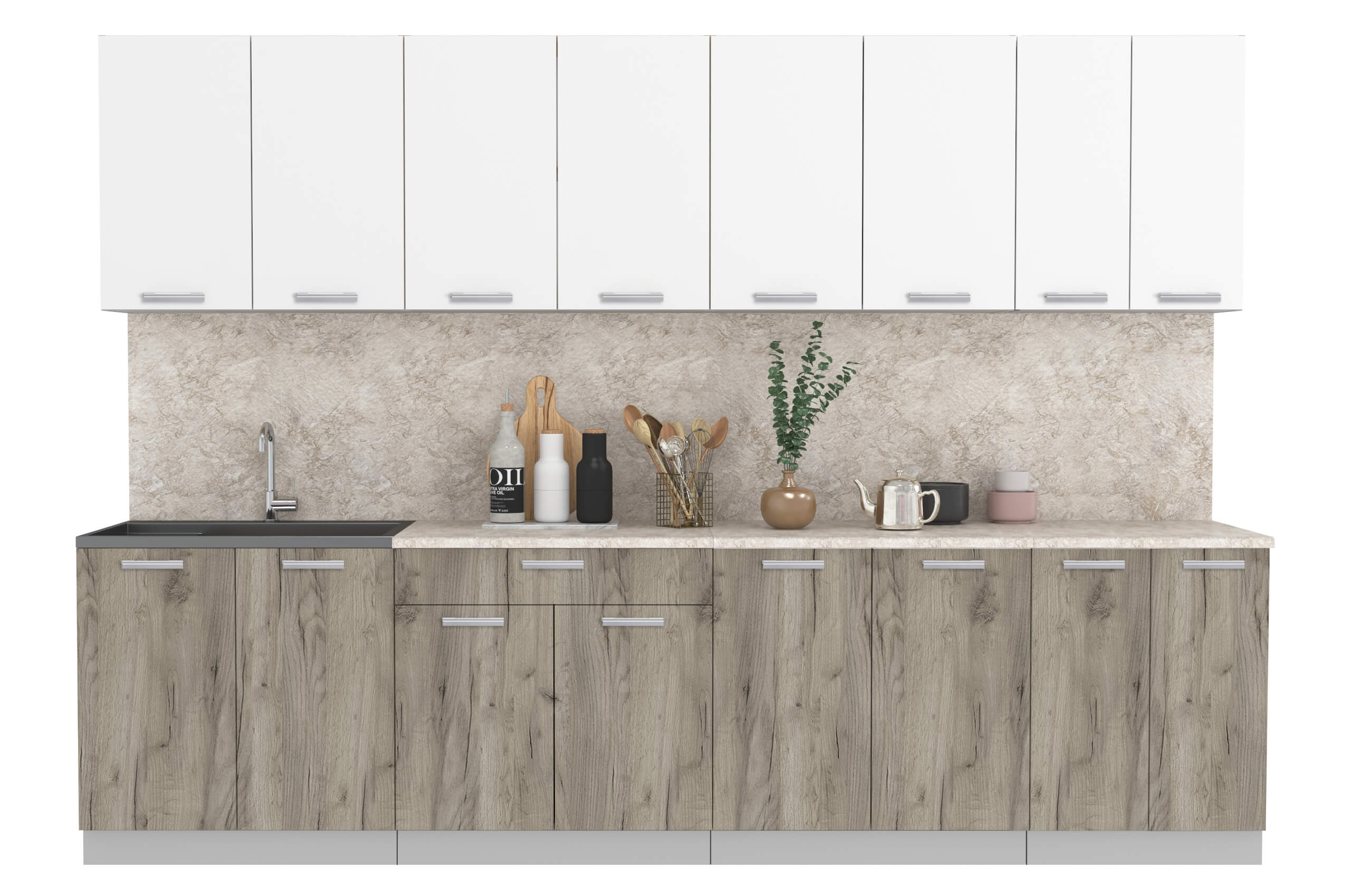 ГОТОВАЯ КУХНЯ ЛАЙТ 3,0 (БЕЛЫЙ/ ДУБ СЕРЫЙ) - Yuta.by