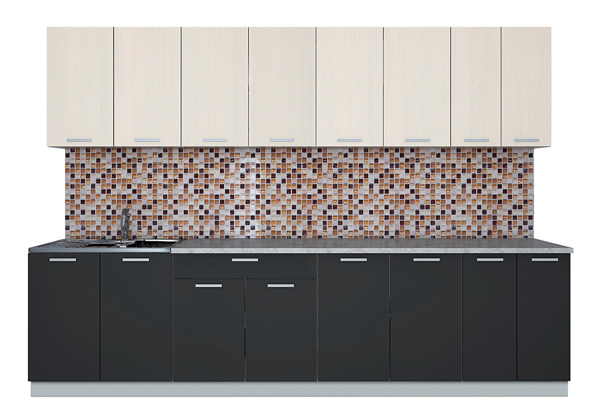 ГОТОВАЯ КУХНЯ ЛАЙТ 3,0 (ВУДЛАЙН КРЕМОВЫЙ/ АНТРАЦИТ) - Yuta.by