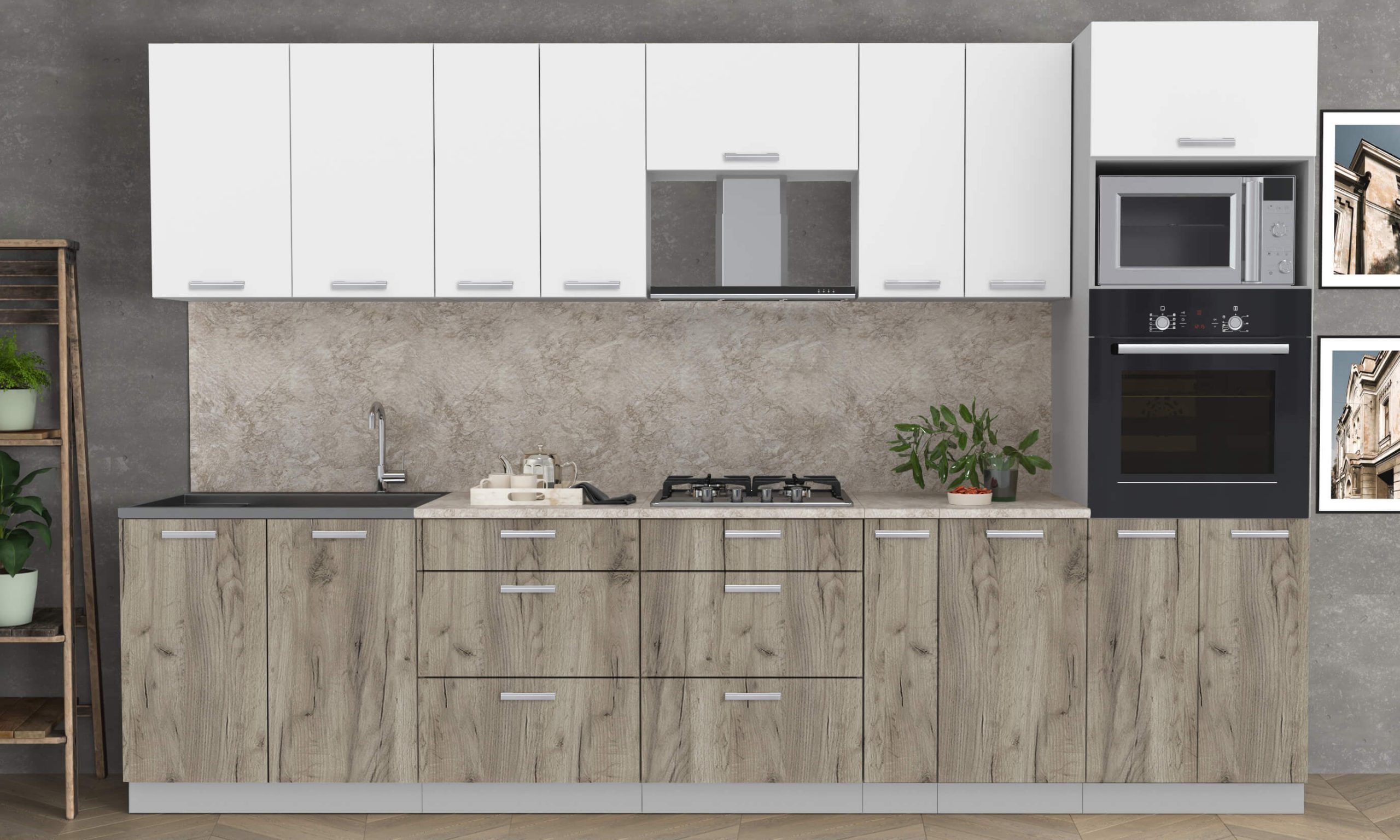 ГОТОВАЯ КУХНЯ ЛАЙТ 3,2ВТ (БЕЛЫЙ/ ДУБ СЕРЫЙ) - Yuta.by