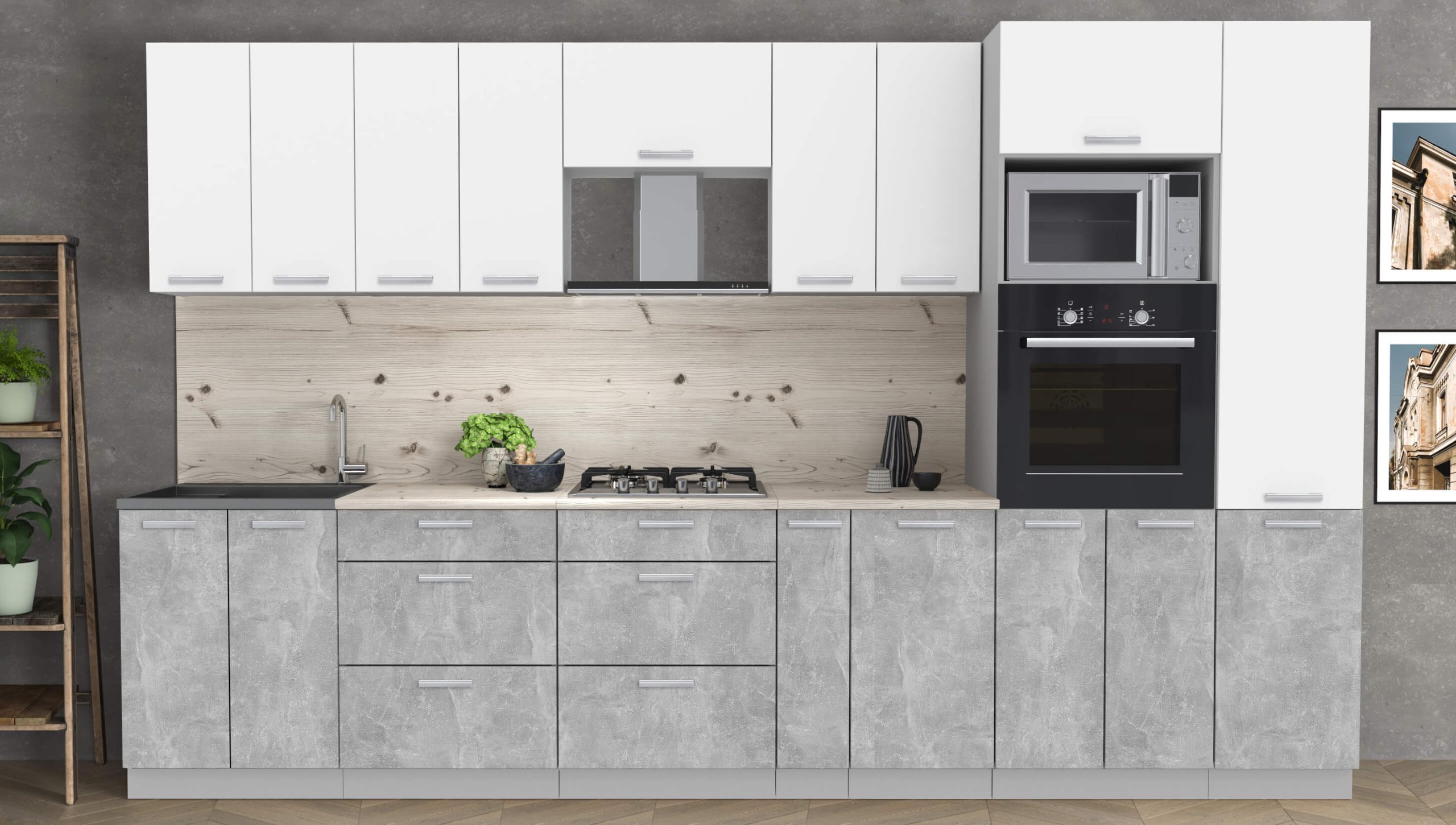 ГОТОВАЯ КУХНЯ ЛАЙТ 3,4ВТ (БЕЛЫЙ/ БЕТОН) - Yuta.by