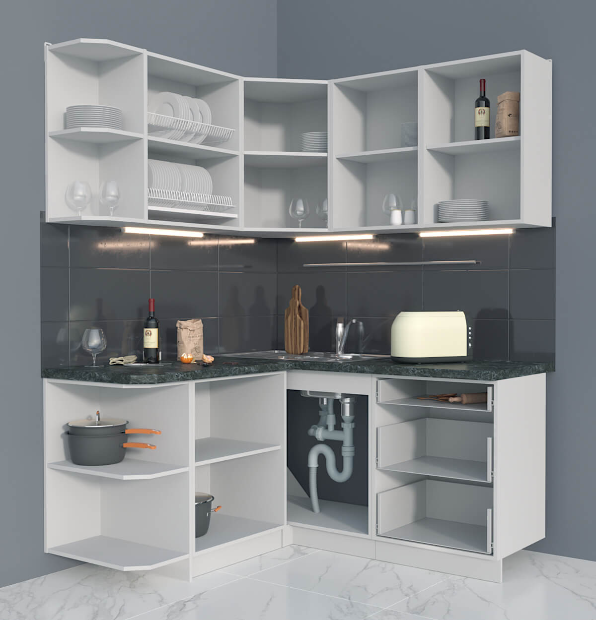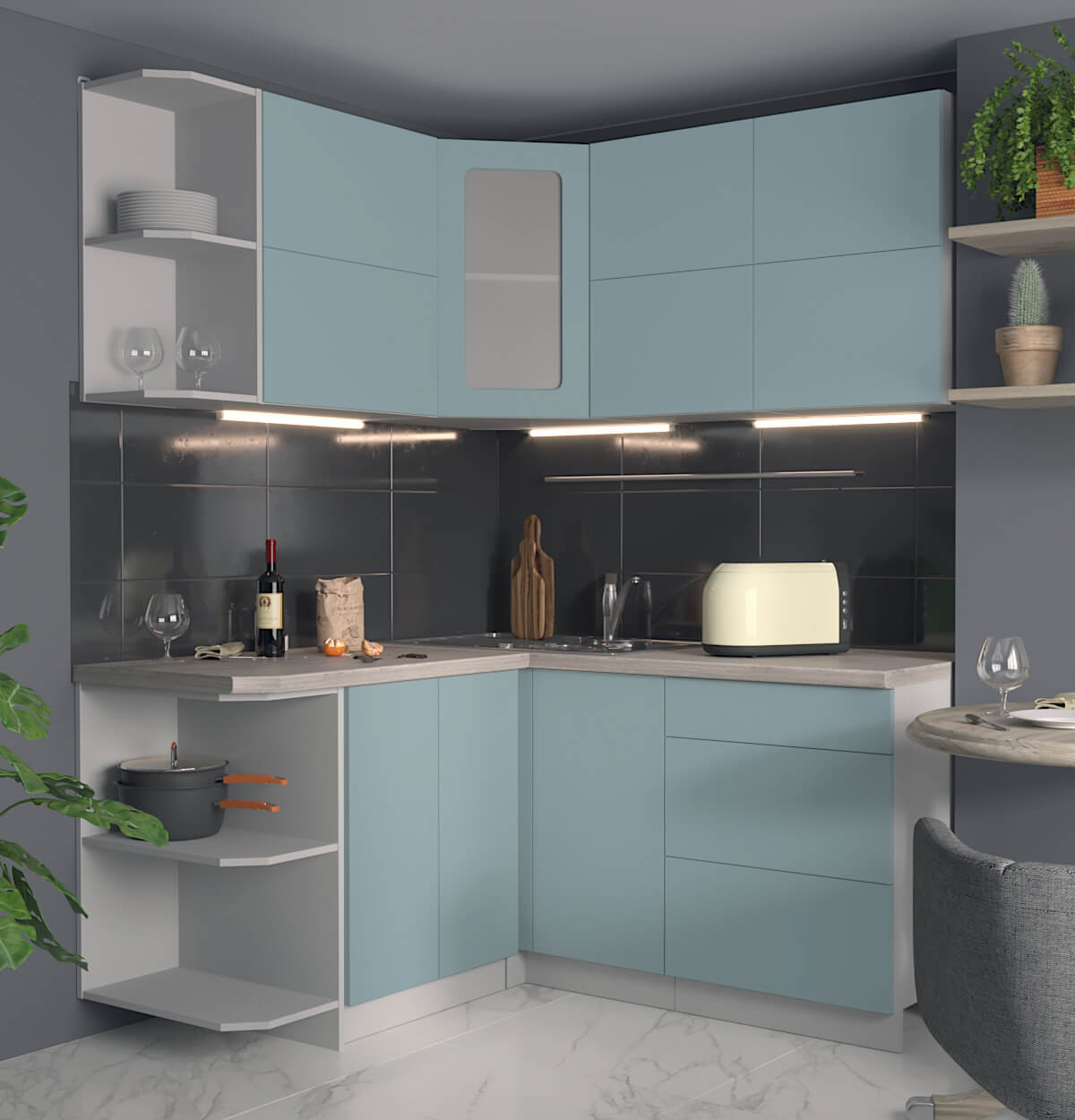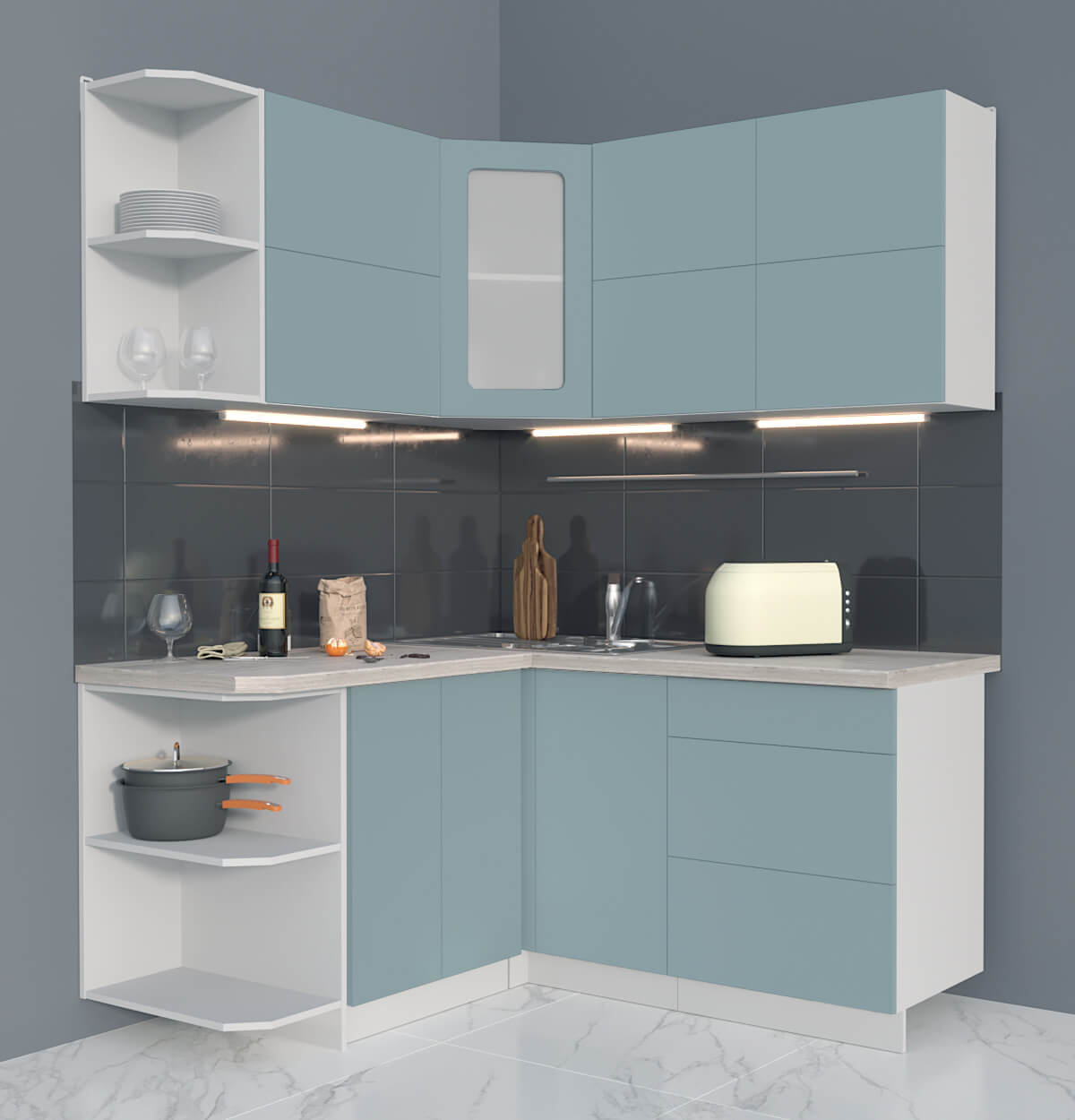 ГОТОВАЯ КУХНЯ МАТТЕ SOFT-TOUCH 1,5Х1,6А (ОКЕАН/ ОКЕАН) - Yuta.by