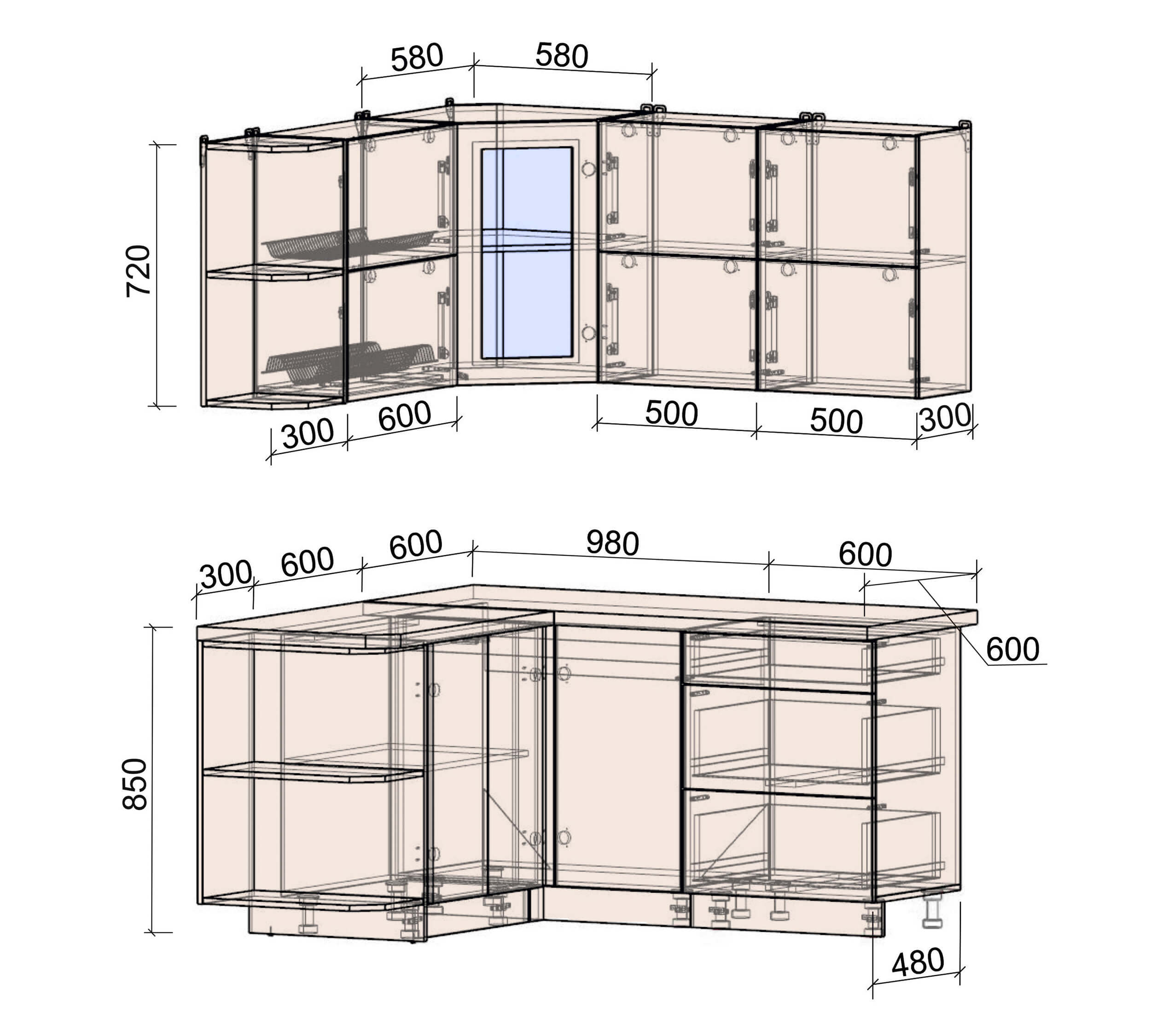 шкаф нижний для посудомоечной машины шириной 450 мм и 600 мм;