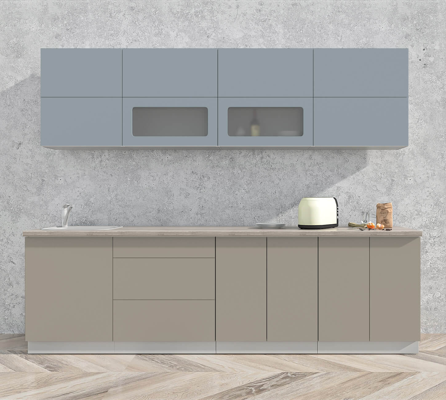 Заказать кухню Мила «Матте» можно в виде готового набора и по модулям;