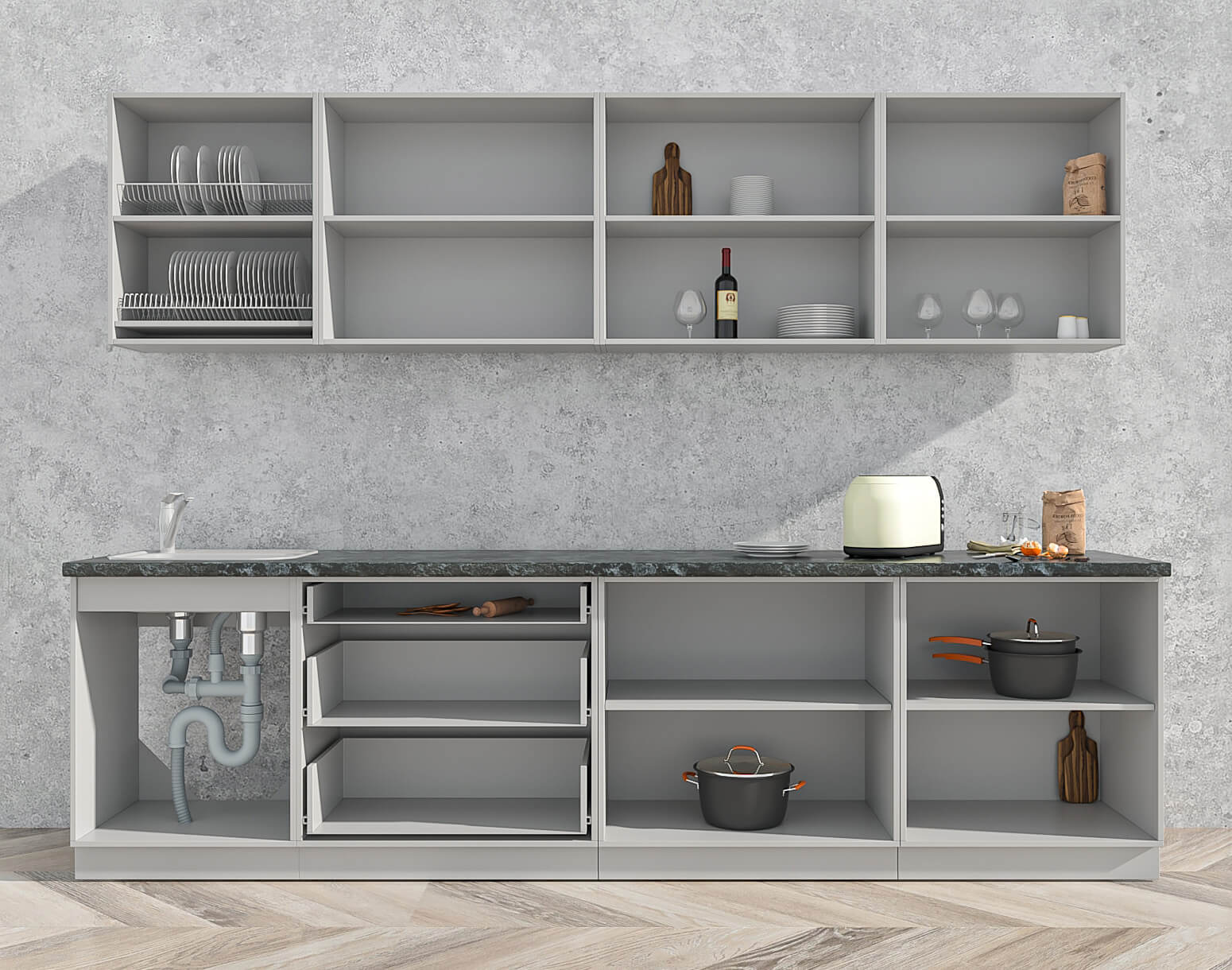 • Заказать кухню Мила «Матте» можно в виде готового набора и по модулям;