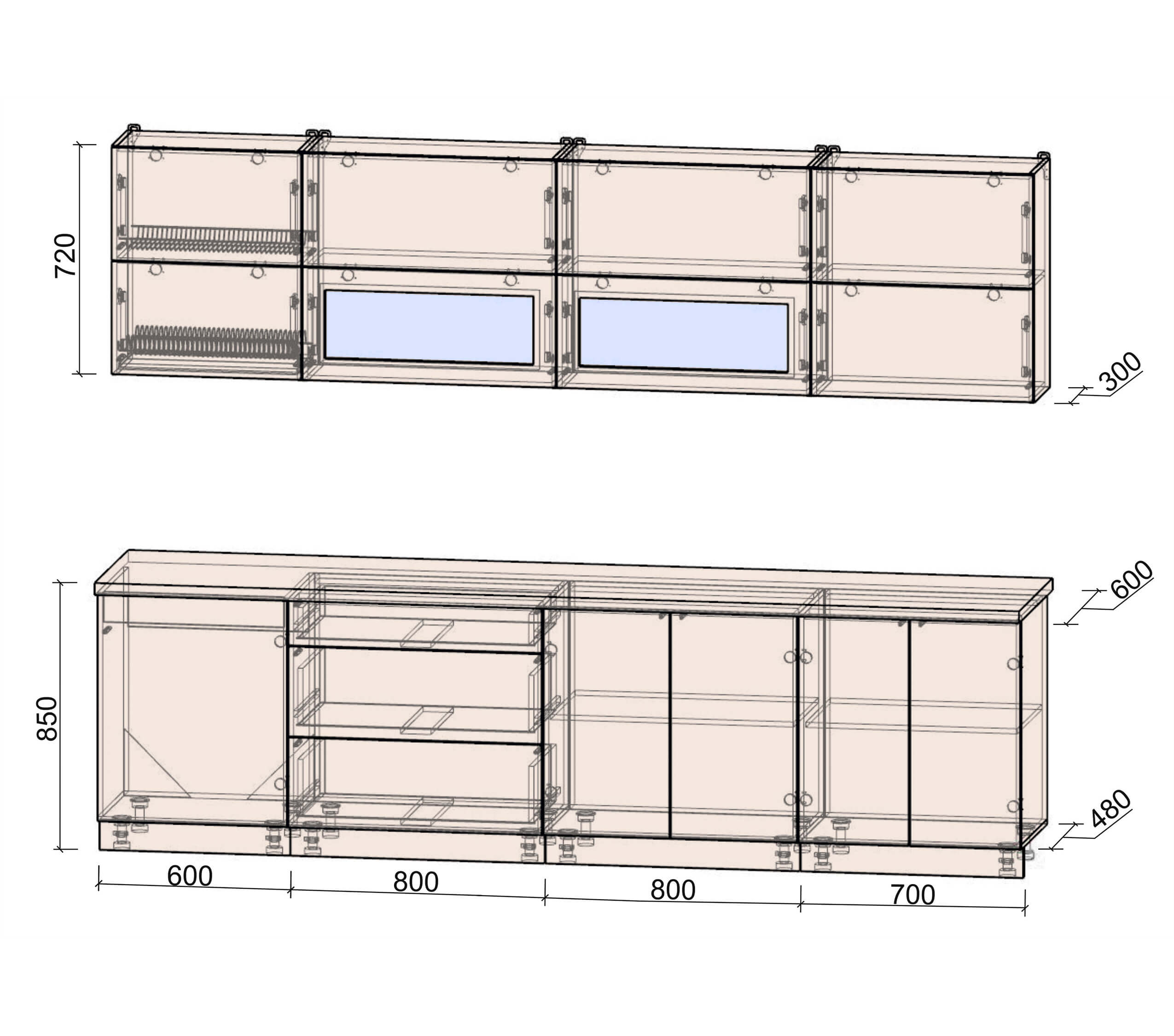 • Столешница (38 мм) отдельная на каждый шкаф или цельная (без увеличения стоимости);