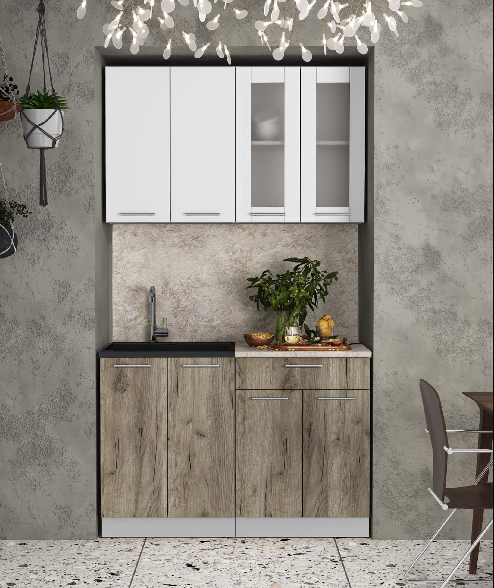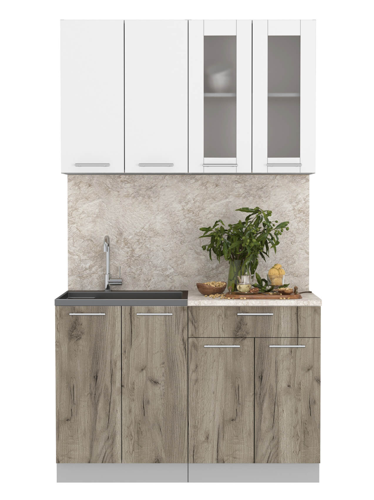 ГОТОВАЯ КУХНЯ МИЛА 1,2 (БЕЛЫЙ/ ДУБ СЕРЫЙ) - Yuta.by